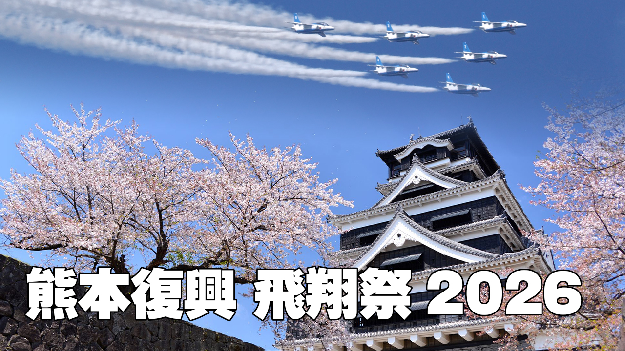 ブルーインパルス!熊本城上空をふたたび!ブルーインパルス展示飛行~熊本地震10年関連事業~