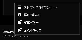 ストリームに流れてきた画像をクリックすると、黒背景で画像が拡大された画面へ遷移します。この画面の左下に”オプション”という文字があります。