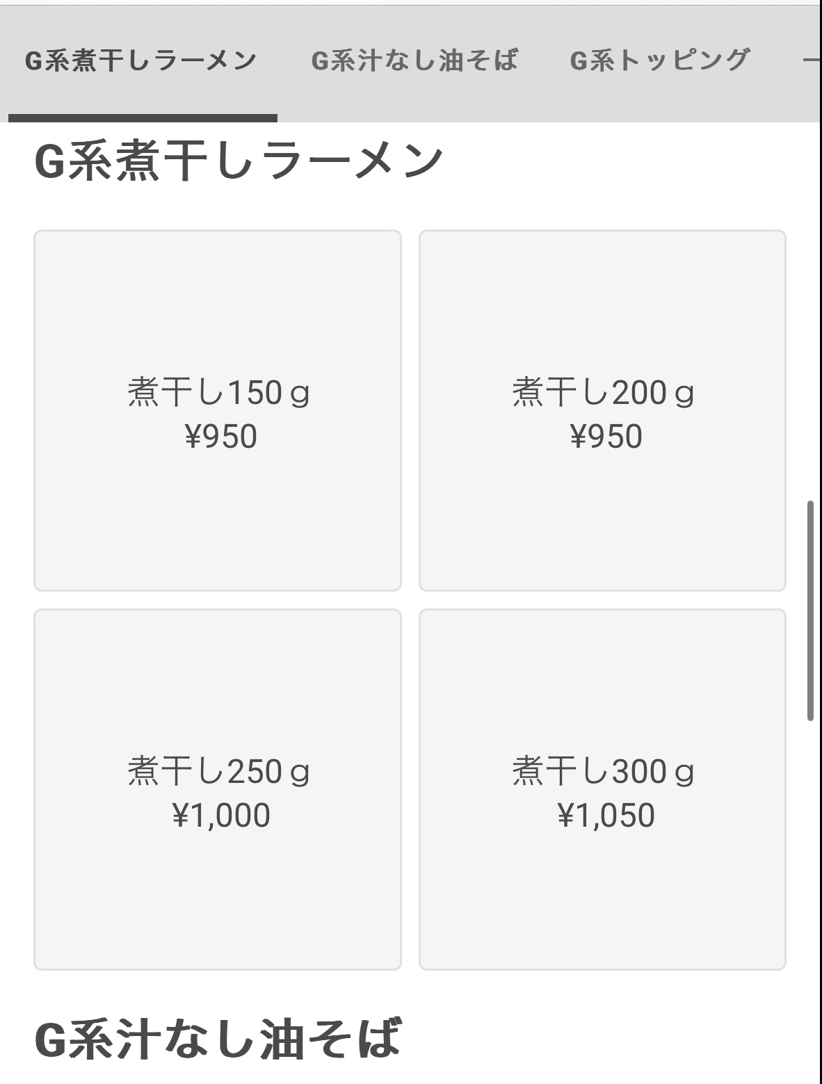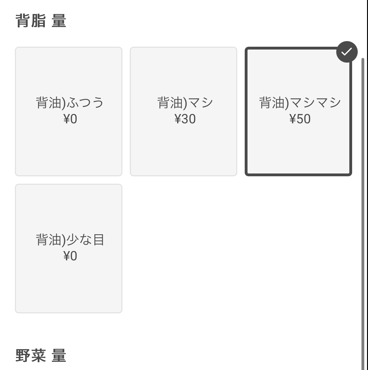 250グラムの麺にアブラとヤサイをマシマシにしてオーダー