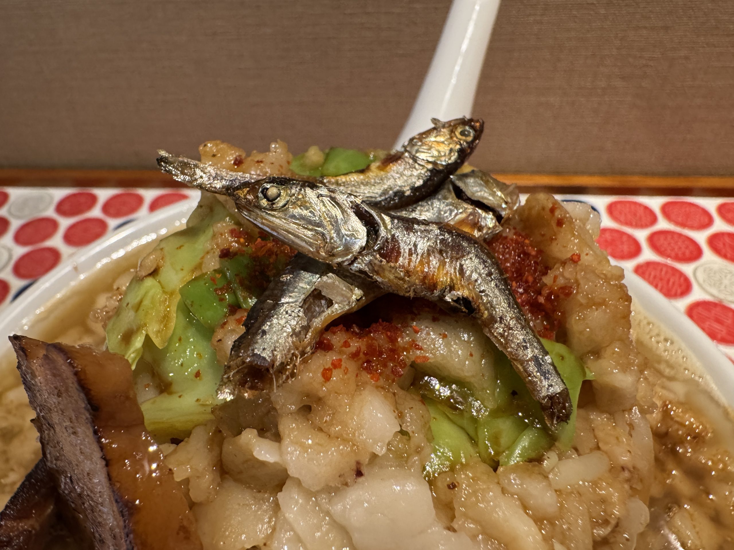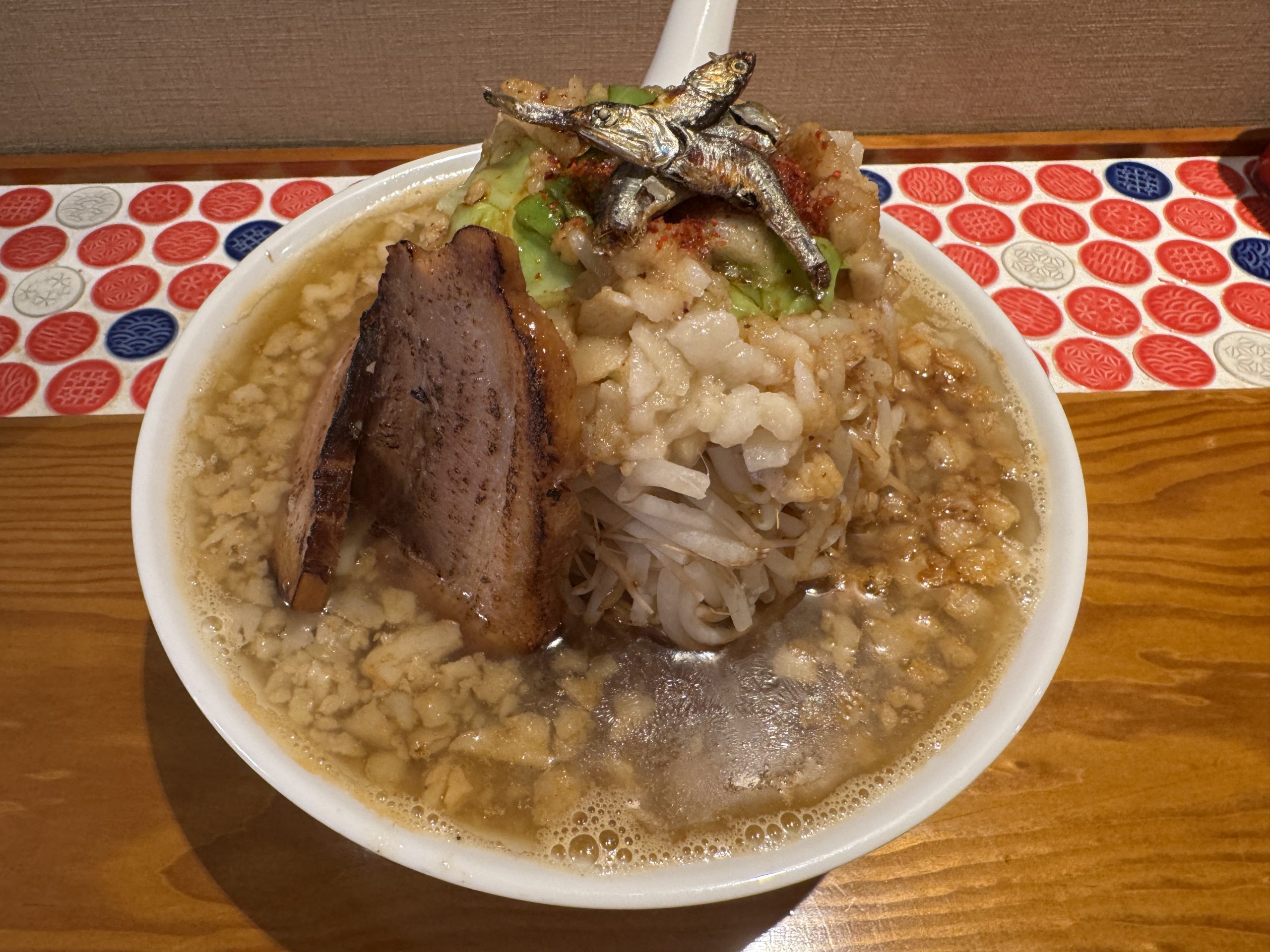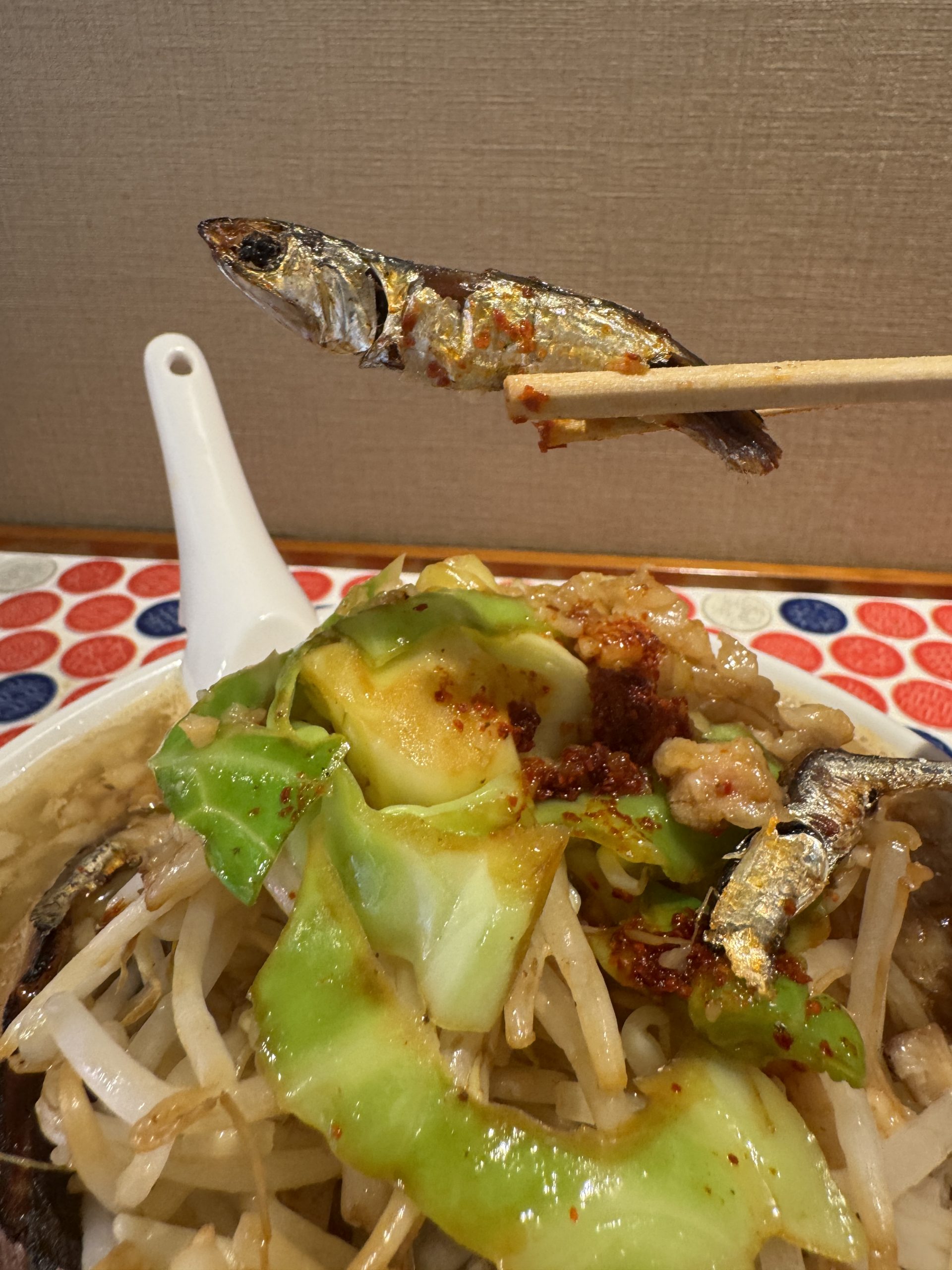ここ、でぶちゃんの「教え」がエッセンスとして含まれた唯一無二の博多ラーメンが食べられる名店なのだが、実は、ラーメン二郎インスパイアな煮干しラーメンも食べられるのである。