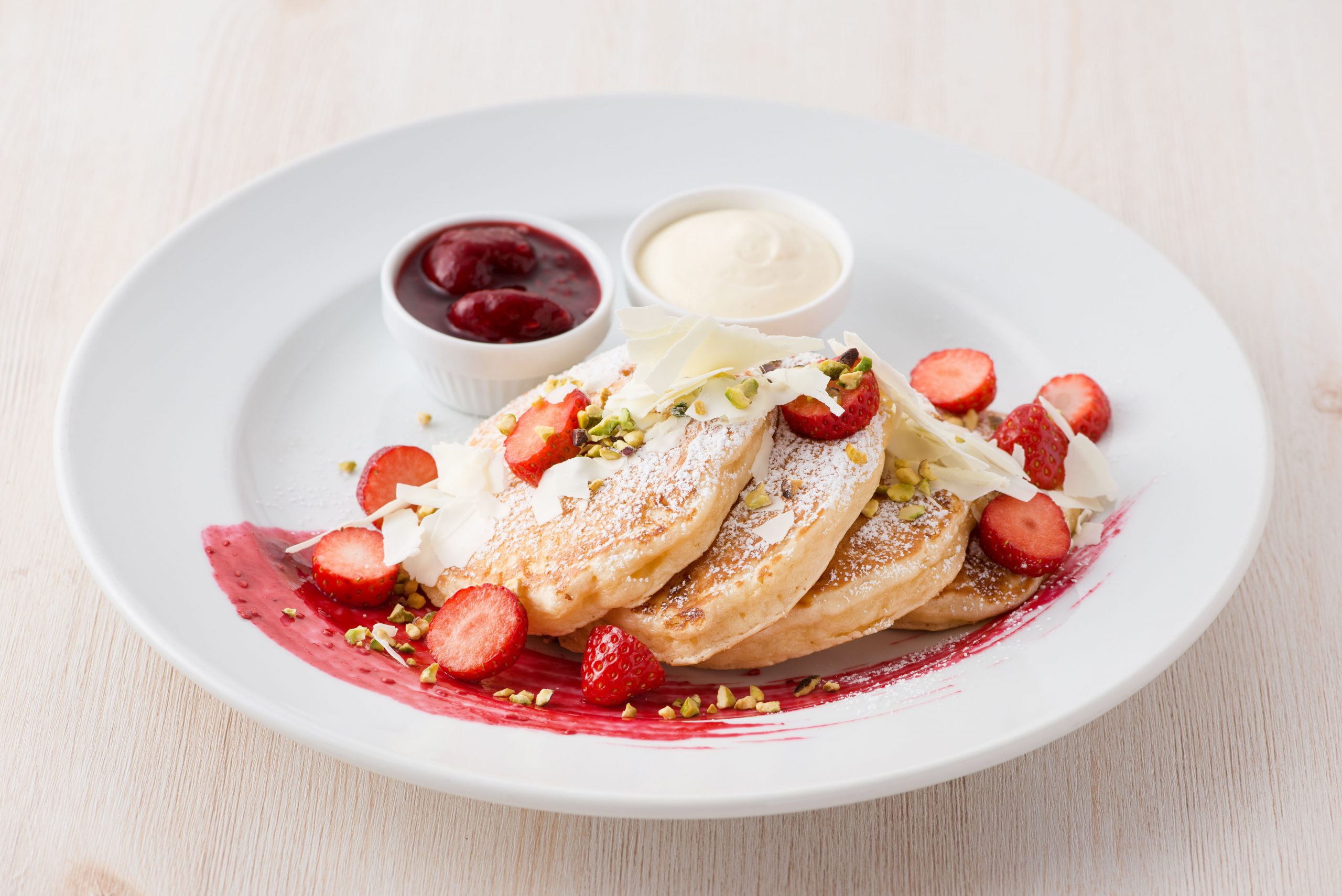 ・「ベリーホワイトチョコパンケーキ」2,000円 ※各店11:00~の販売、店舗により若干設定が異なります。