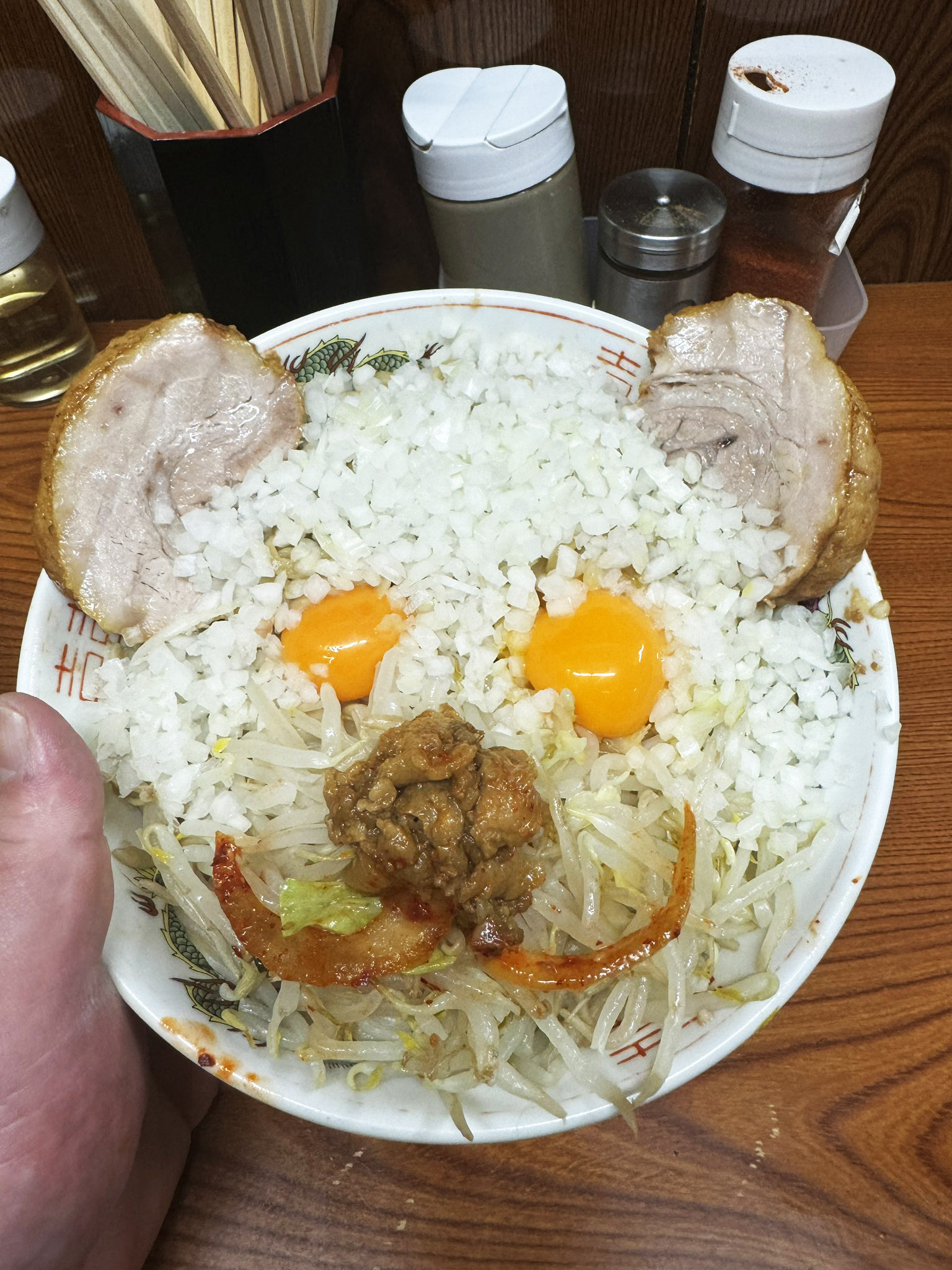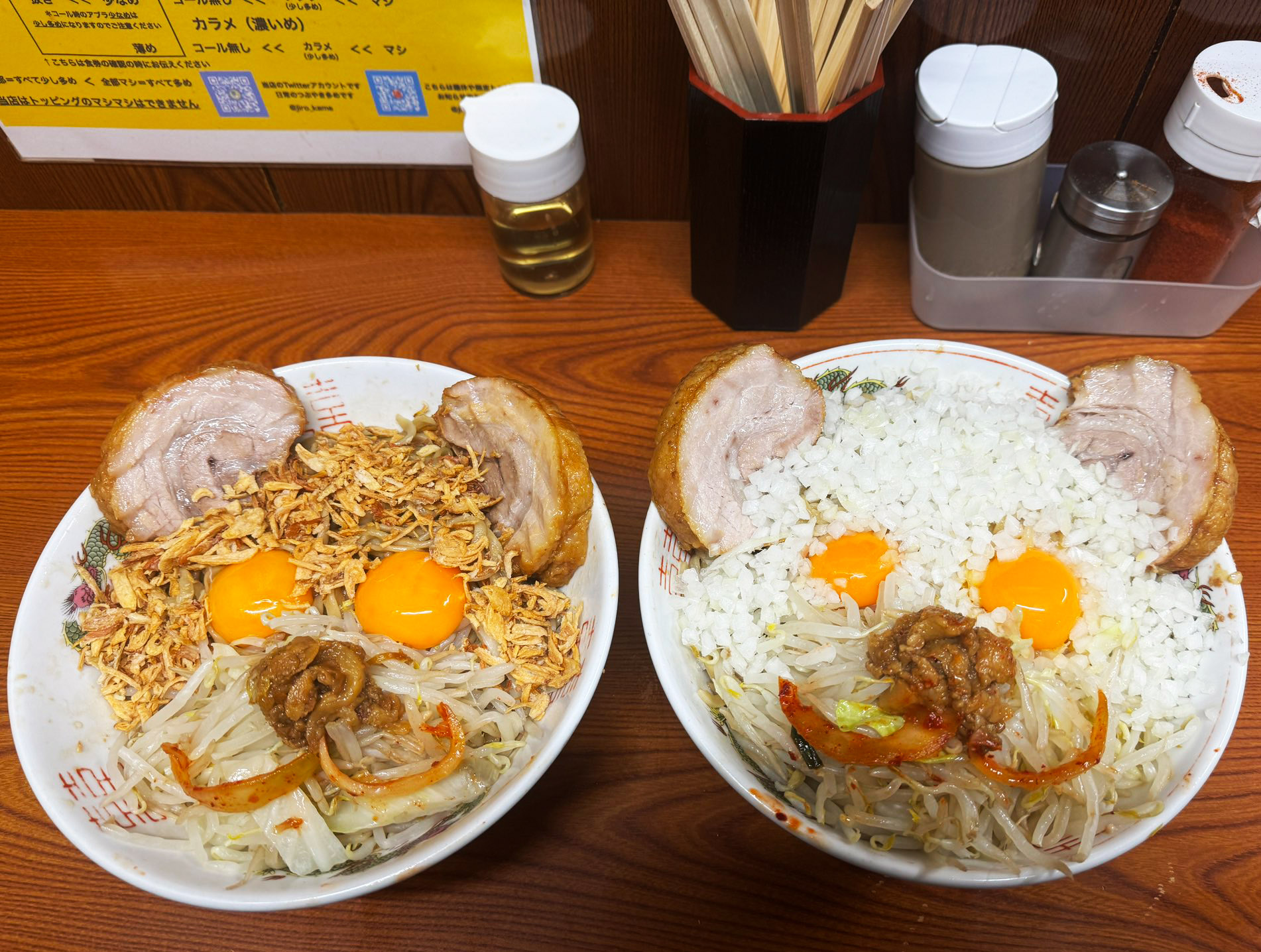 ラーメン二郎亀戸店の「クマちゃん汁なし」「白クマちゃん汁なし」