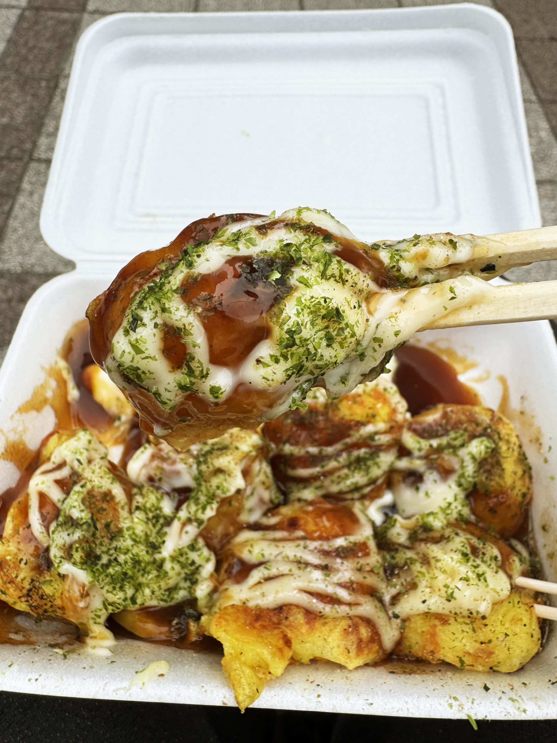 寛子のたこ焼き、実にウマイ。心からウマイ。トロットロのトロトロ系なんだけど、モチモチに近い食感。ホワッホワで、フワッフワで、「とろける」の質が独特。ソースも優しいテイストでとげがなく、食べ進めてもまったく飽きない。うまい、実にうまい。