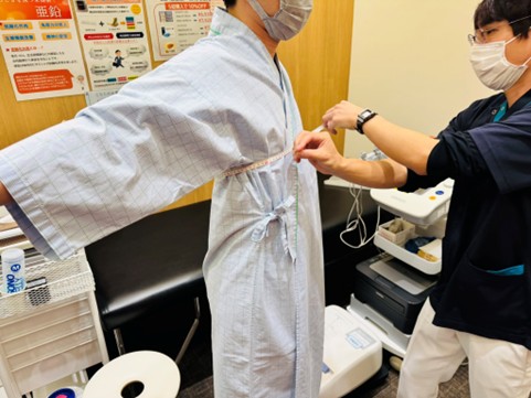 腹囲や胸囲を測って体脂肪や筋肉量の変化などを観察していきます。