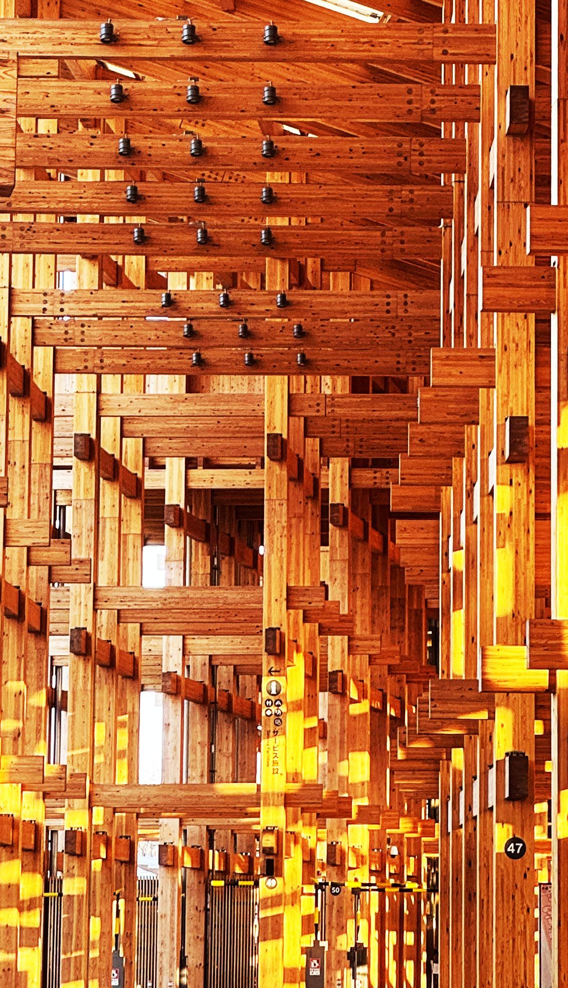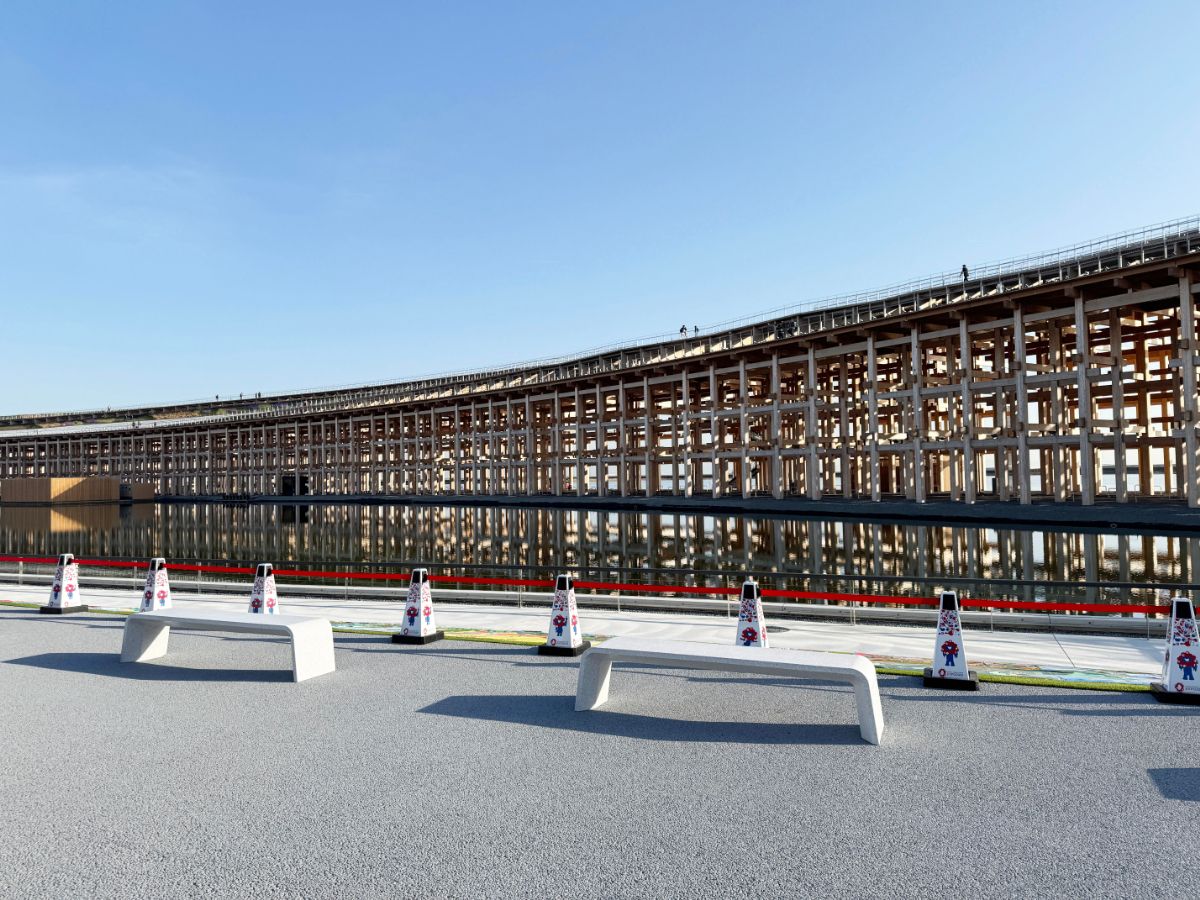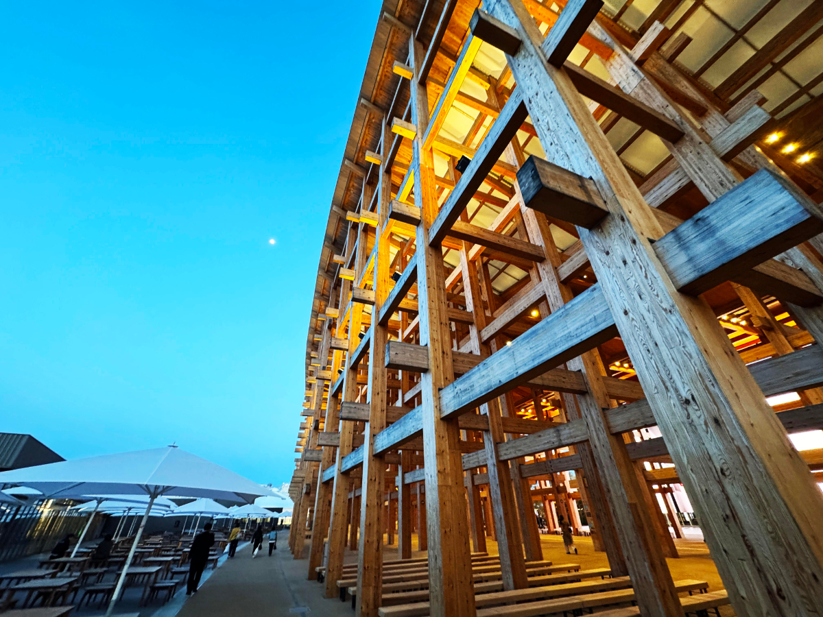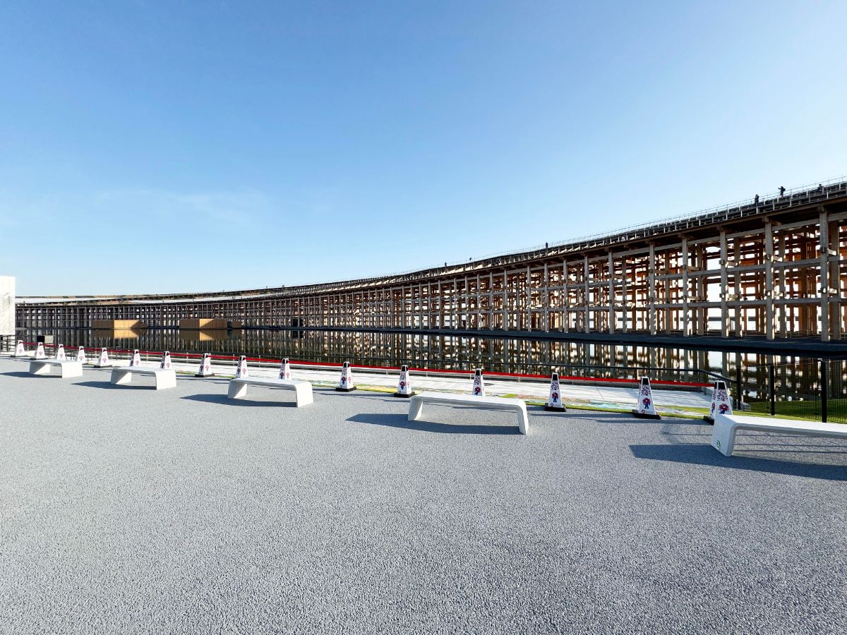 大屋根リングはスギ、ヒノキ、オウシュウアカマツを使用して造られており、内径615メートル、径675メートル、幅30メートル、高さ12メートルとのこと。数字だけでも巨大さが伝わってきますが、実際に行けば、よりその巨大さが理解できるはずです。