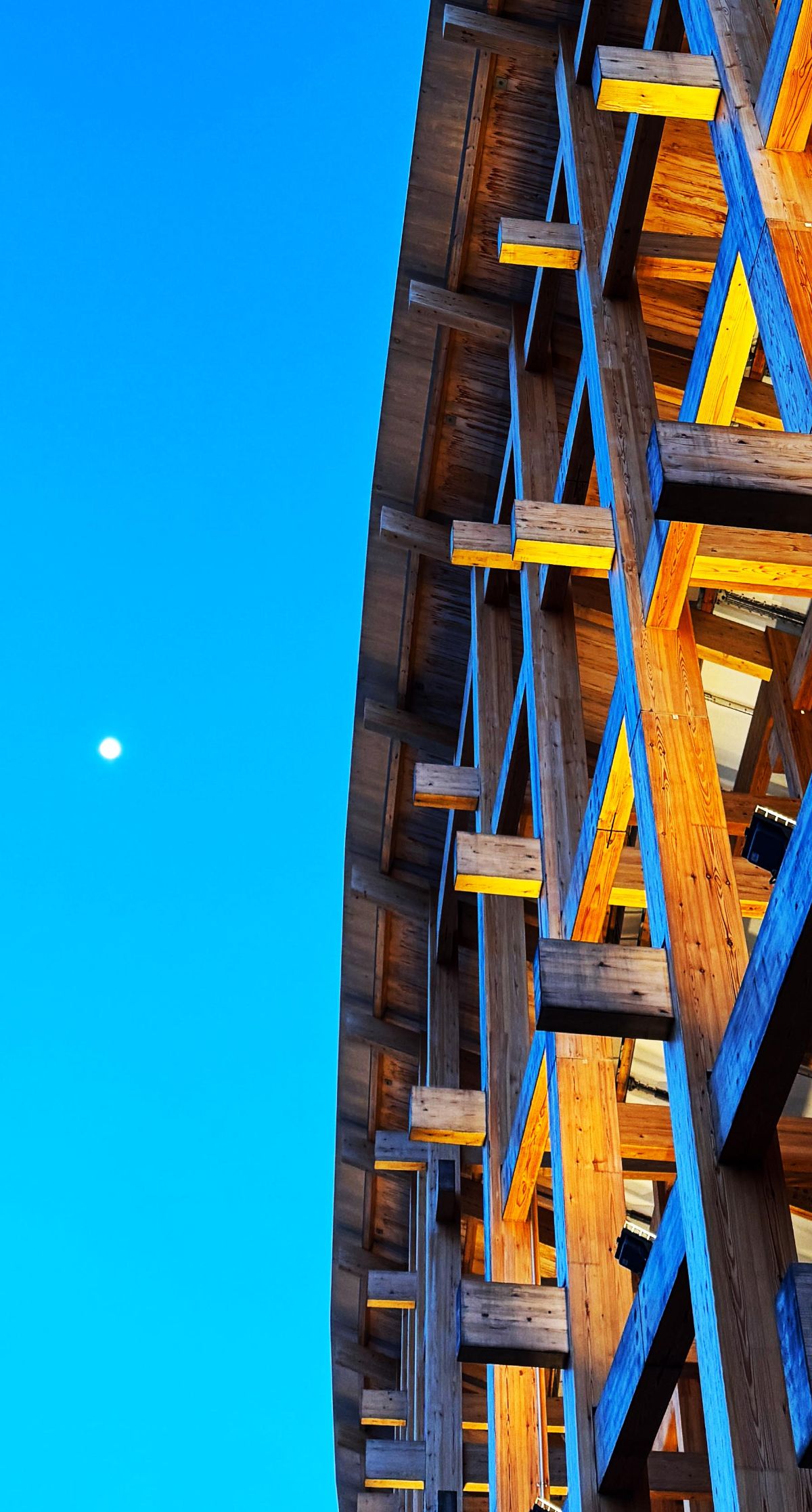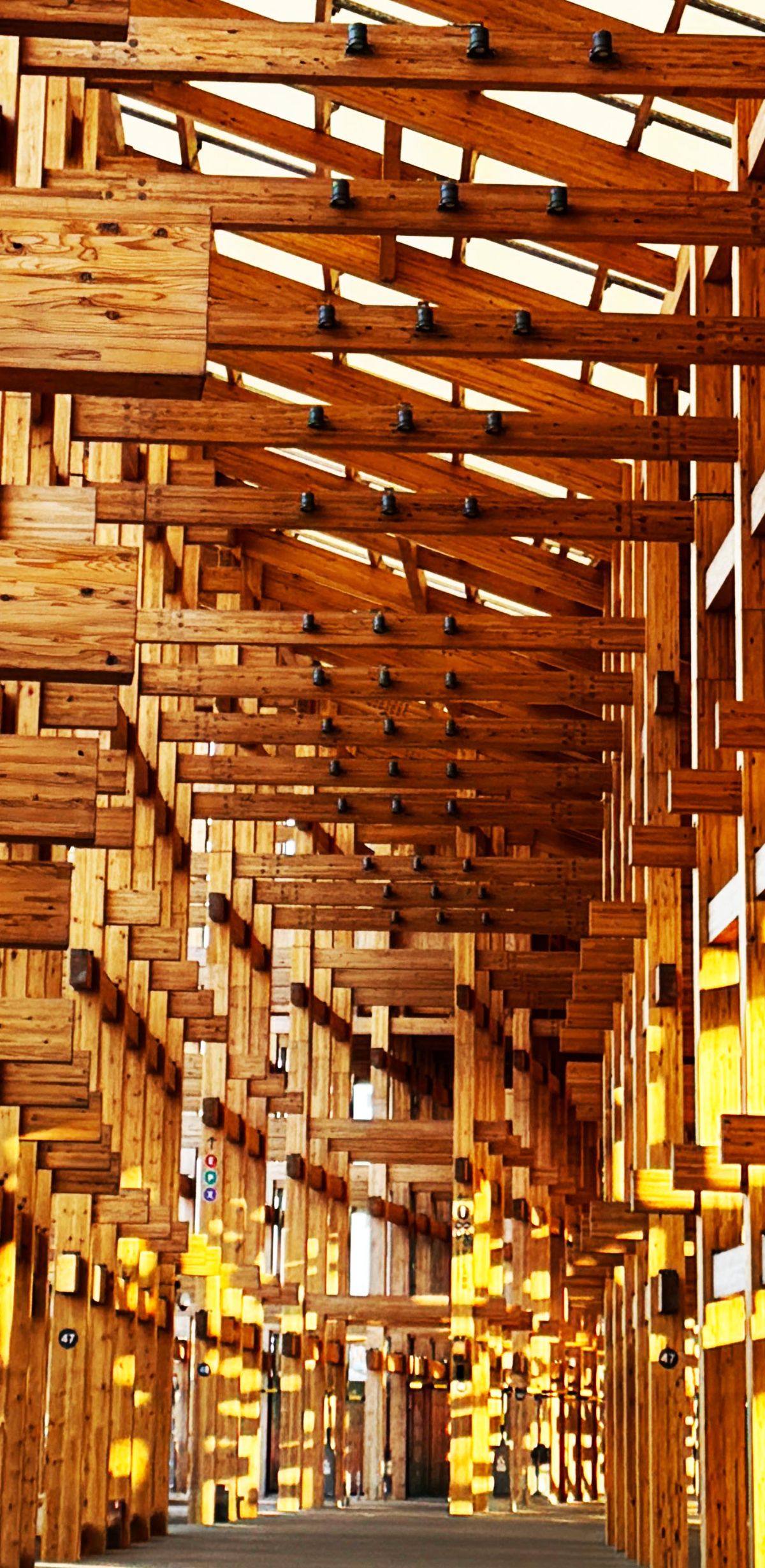 「大屋根リングは、「多様でありながら、ひとつ」という会場デザインの理念を表す大阪・関西万博会場のシンボルとなる建築物です。日本の神社仏閣などの建築に使用されてきた伝統的な貫(ぬき)接合に、現代の工法を加えて建築しています。会場の主動線として円滑な交通空間であると同時に、雨風、日差し等を遮る快適な滞留空間として利用されます」