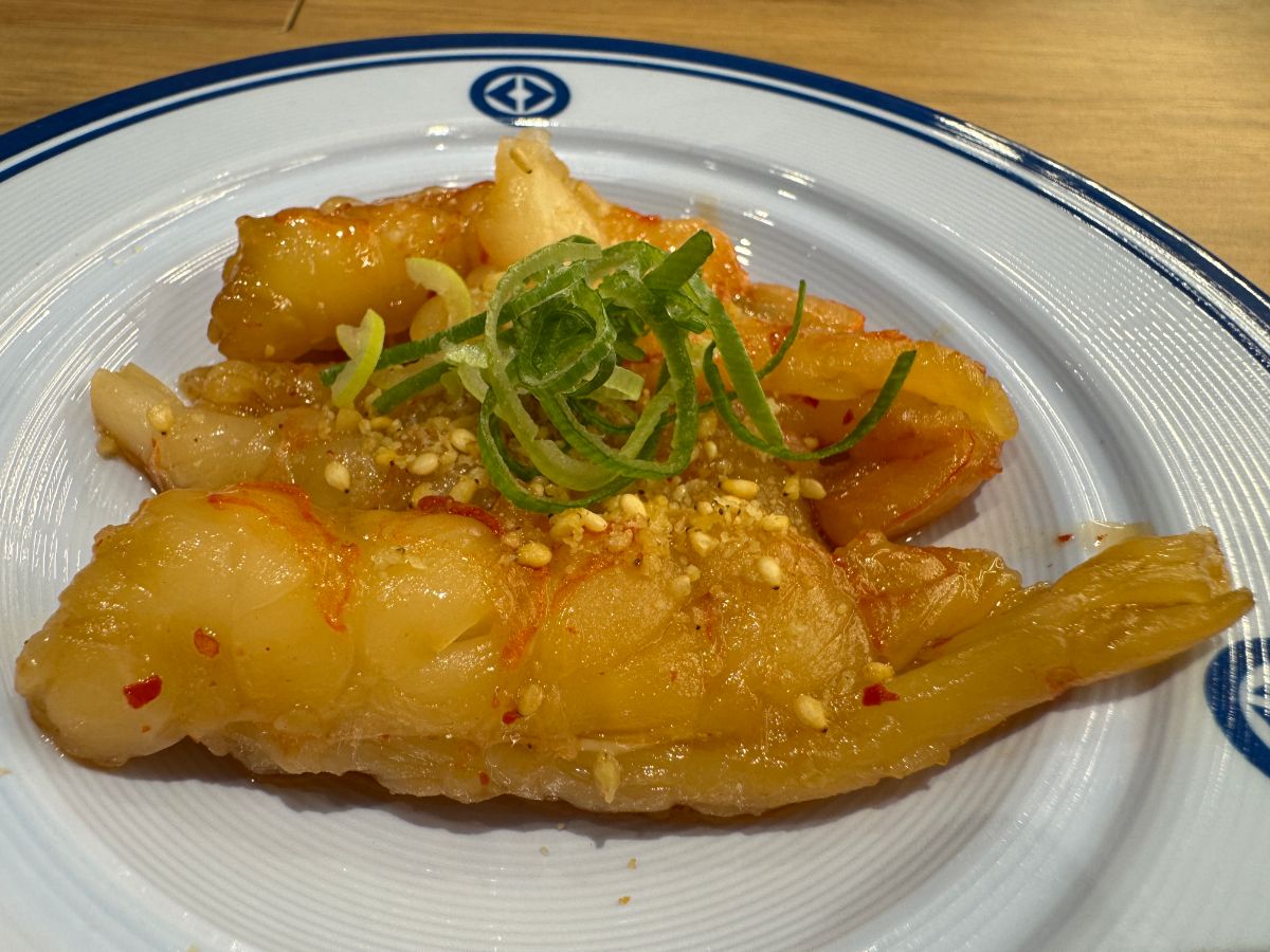 韓国の「カンジャンセウ」は、海老のプリプリ食感がしっかり残っている食感が楽しい一皿。スパイス加減はかなり穏やかで、子どもでも食べられそう。海老の奥底まで旨味が入っているので、食べれば食べるほど、ジュワジュワ旨味があふれ出て素晴らしい。