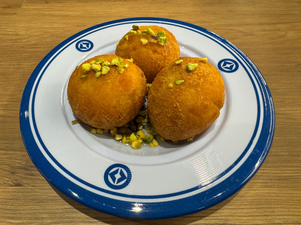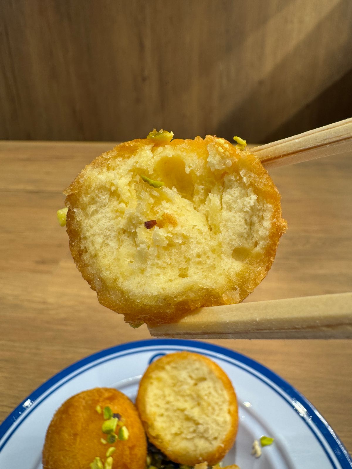 バングラディシュの「ミスティ」は、ドーナツのようなビジュアルでありながら、実際食べてみると、サーターアンダギーに似たものを感じる質量の多い圧縮系のパン。1皿に3個あるが、ゲキウマなので、全部一人締めしたいほどハマる。けっこうドライなのでドリンク必須!