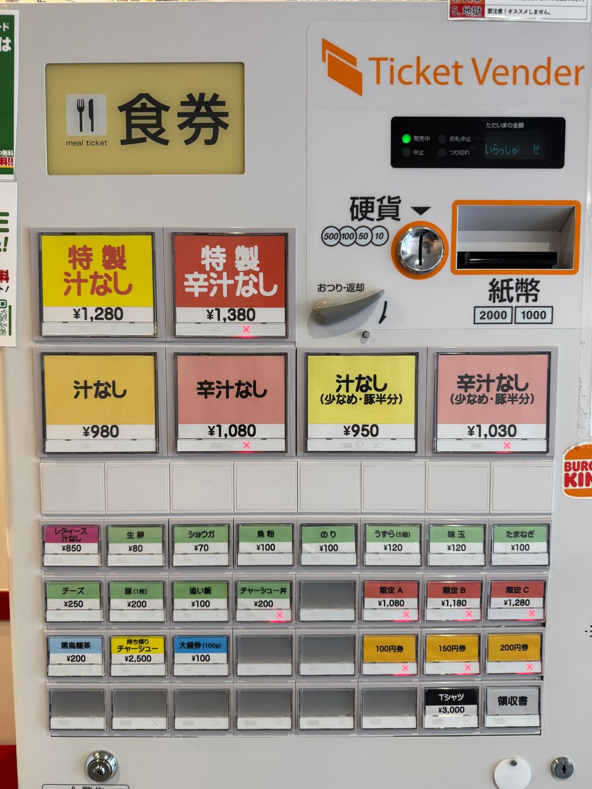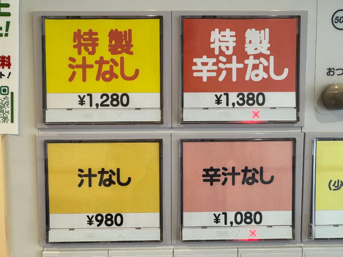 ラーメン二郎形式で、無料トッピングの増減を決められる。マシマシはないみたい。マシマシが欲しかった。ラーメン二郎にッ!! ライドするならッ!!