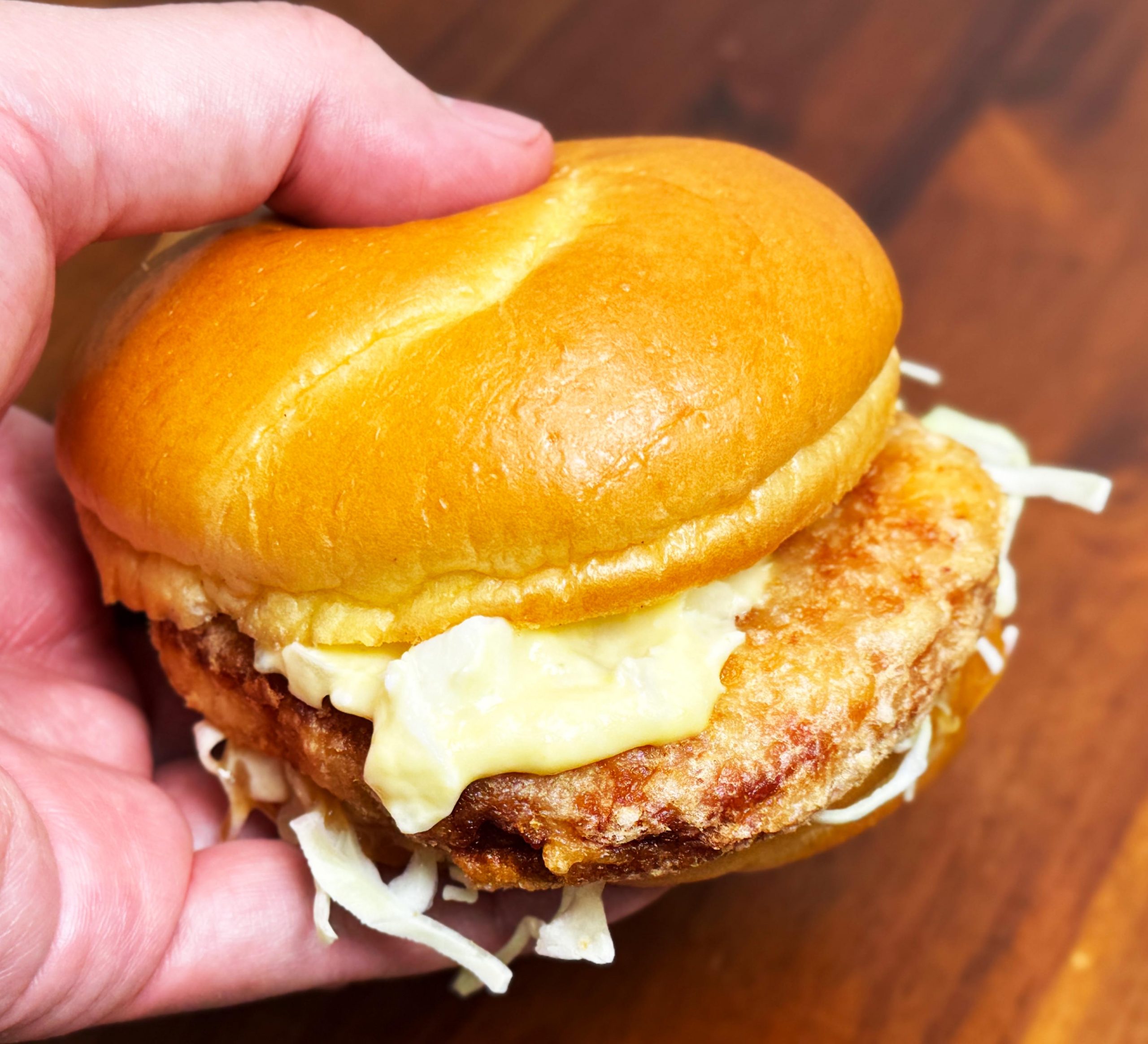 食べてみ。まずは食わないとわからない。タルタル南蛮チキンタツタの良さは食べてこそわかる。なんかバンズとめちゃくちゃ合うの。タルタル南蛮が。このバンズ、蒸してんのかな。なんか蒸したっぽい食感のバンズね。これがタルタル南蛮に合うの。