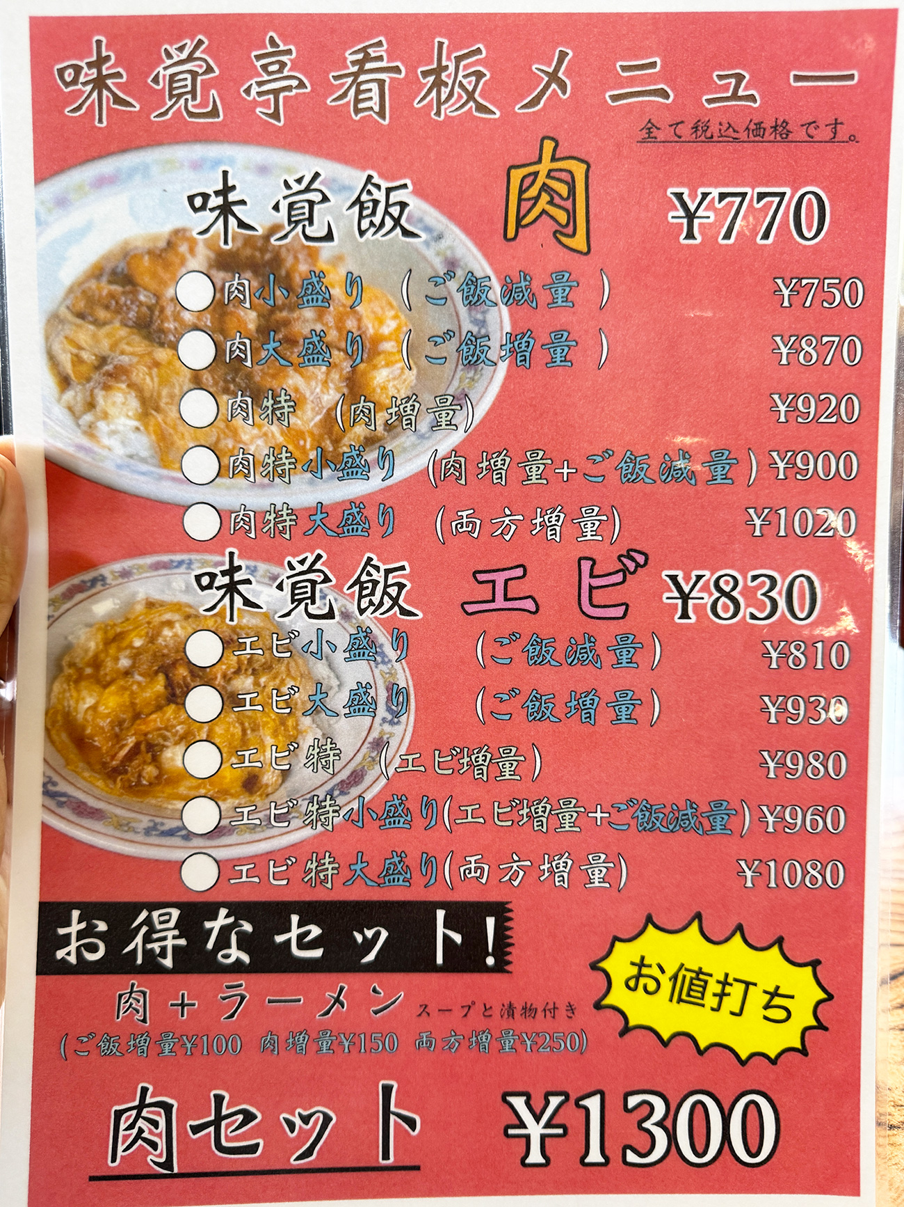 すると10分ほど離れた場所に「味覚亭」という町中華があることに気づきました。調べてみると「北京飯」の取り扱いはないものの、なにやら「味覚飯」という似た料理を提供している模様……! これは行くしかない!
