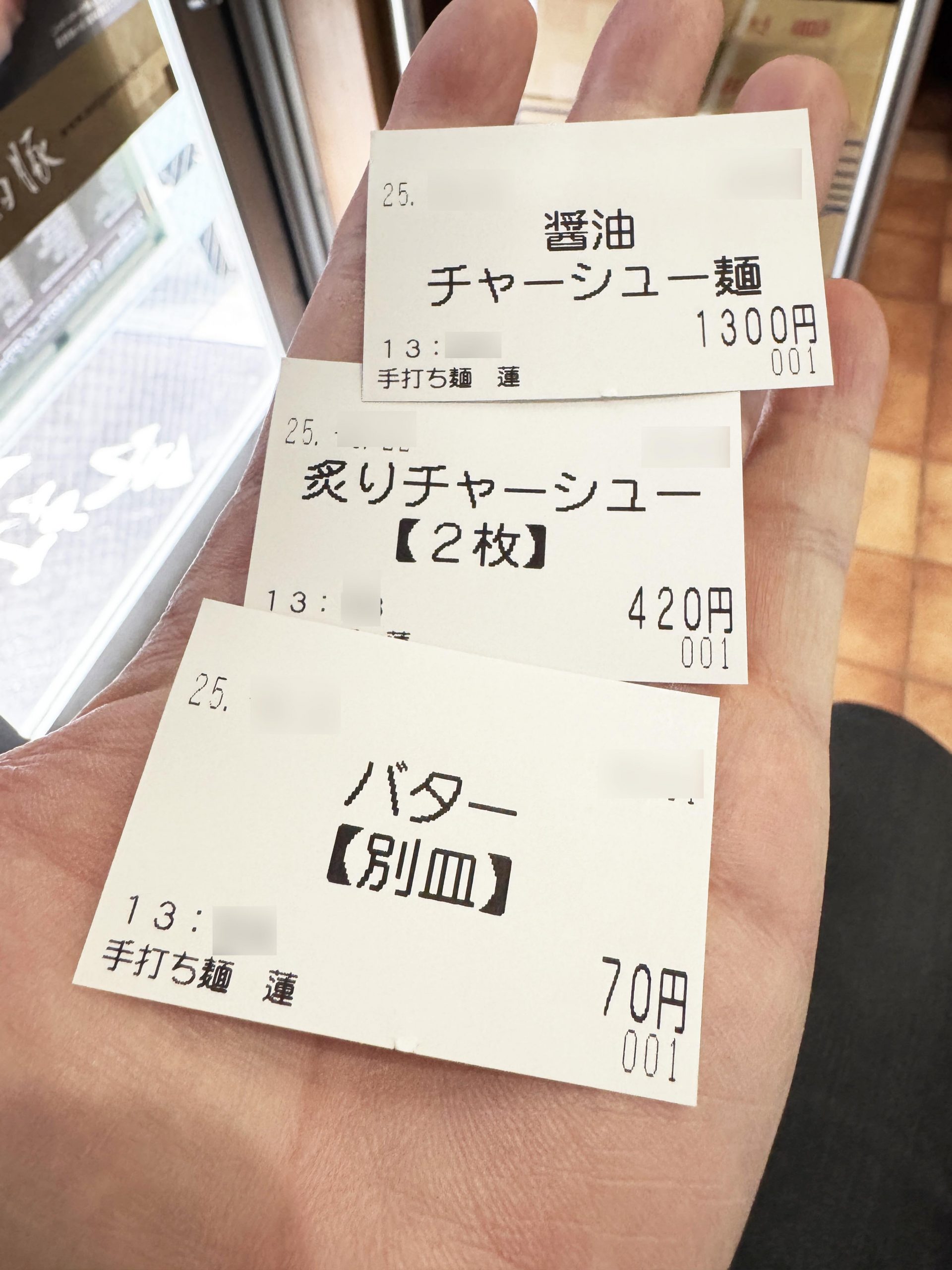 店内に入ったら食券を買う。今回はチャーシュー麺と、炙りチャーシューのトッピングをオーダー。とことんチャーシューを楽しみたいから! 濃厚なテイストが食べたかったので、おまけでバターもオーダーしたよ。
