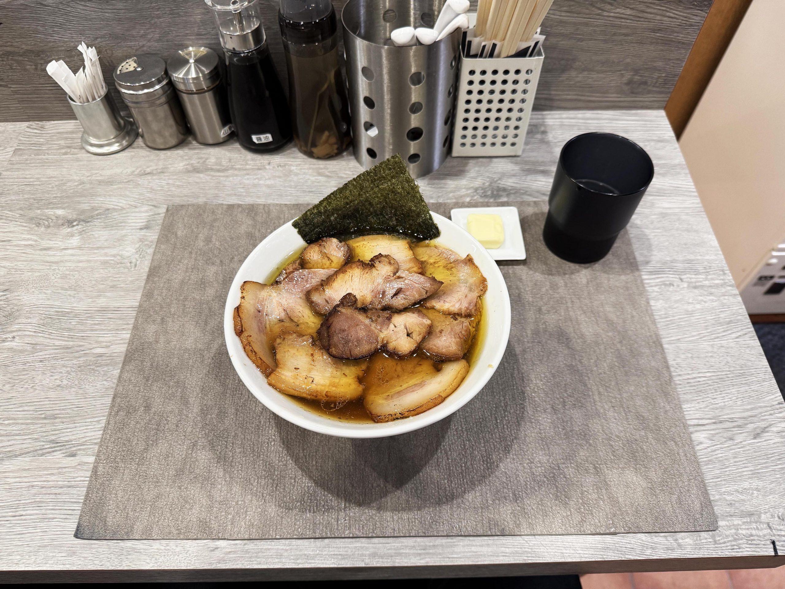 麺とチャーシュー、その相乗効果を最大限に引き出す絶妙なバランス。ずっと、ずっと、すすっていたい。うまい。ちなみに、ラスト、スープにバターを溶かし入れて完飲。ごちそうさまでした!