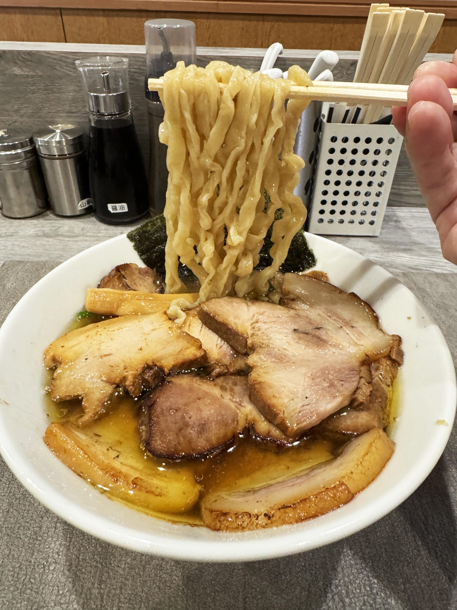 そして忘れてはならない存在、それがチャーシュー。脂身ジューシーなチャーシューと、赤身でワシワシ系のチャーシューがバランスよく混在していて、どちらも激ウマ。あふれる旨味エキスを脂身から感じ、スープとの調和を赤身から感じる。