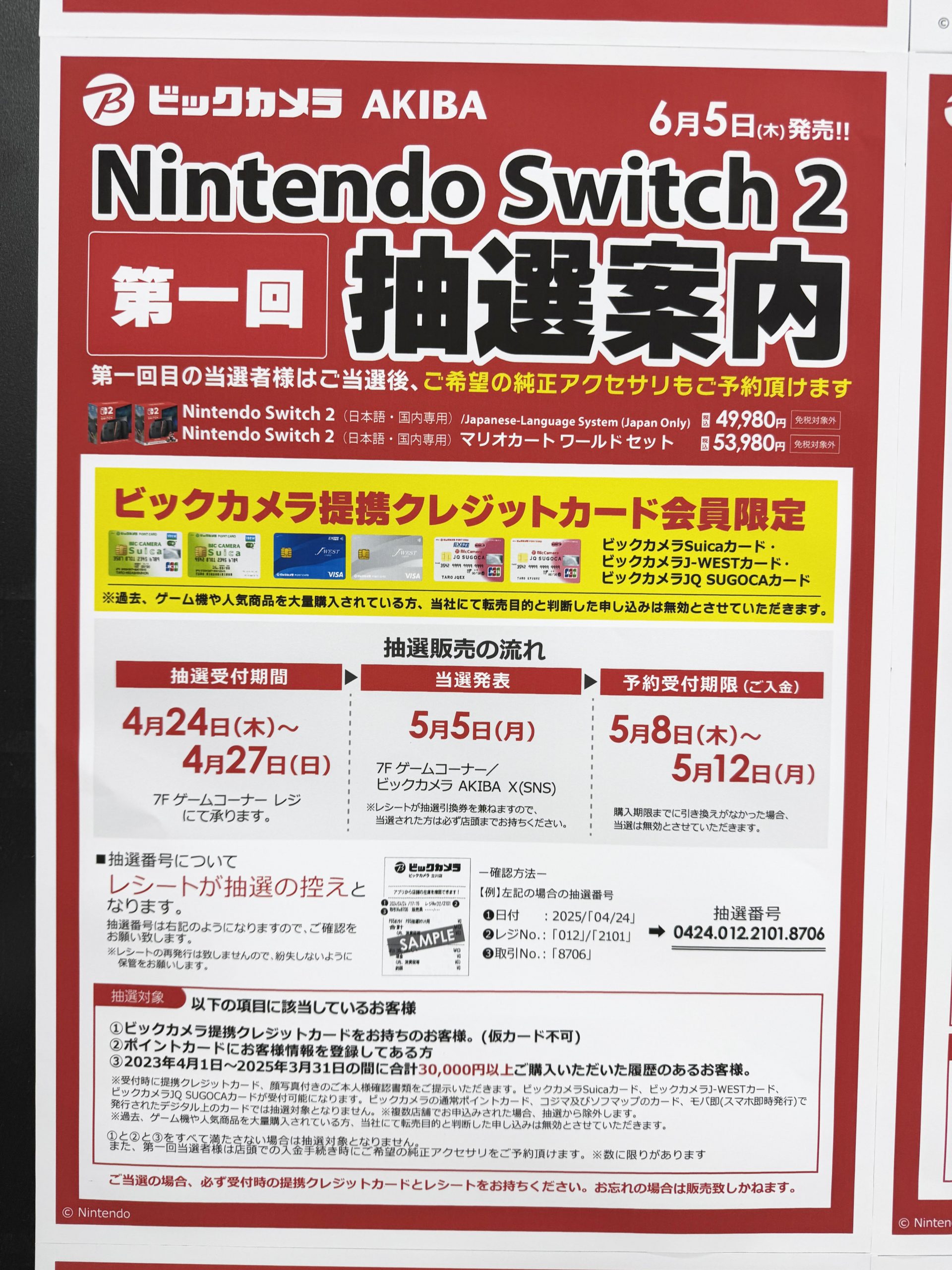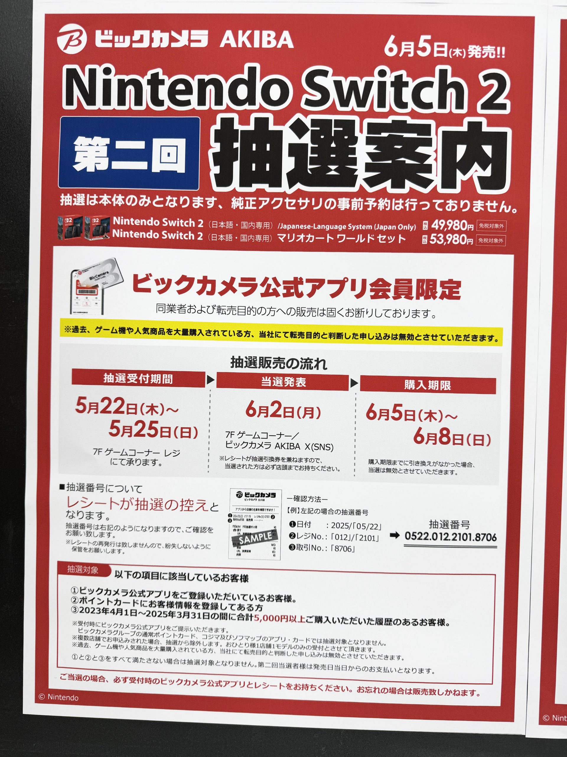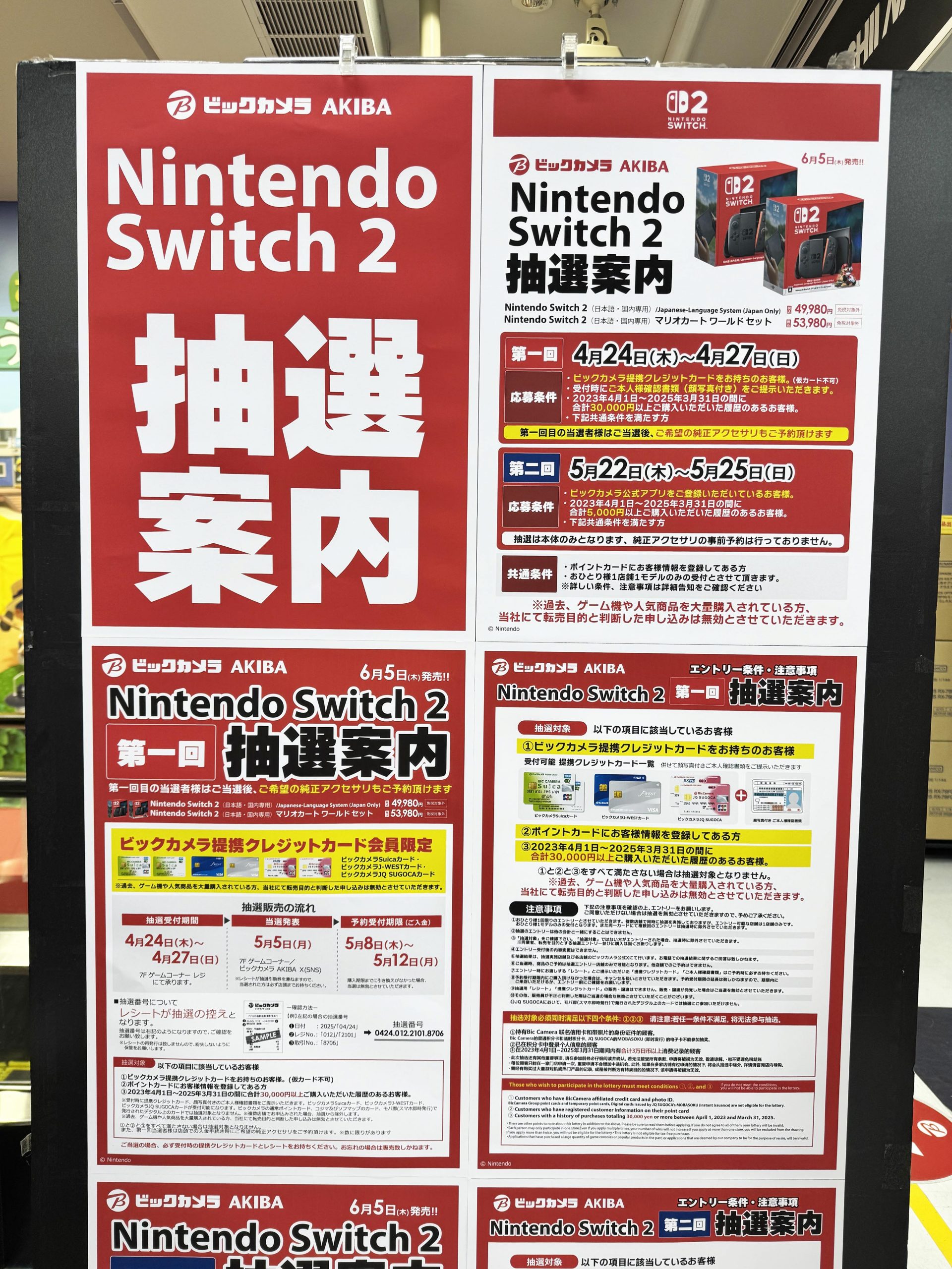 ⚠抽選条件をよくお確かめの上、ご来店ください。#ビックカメラ #秋葉原 pic.twitter.com/QpDNE4KvOy— ビックカメラAKIBA【公式】🌸アキバたん🐱 (@bic_akiba) April 22, 2025