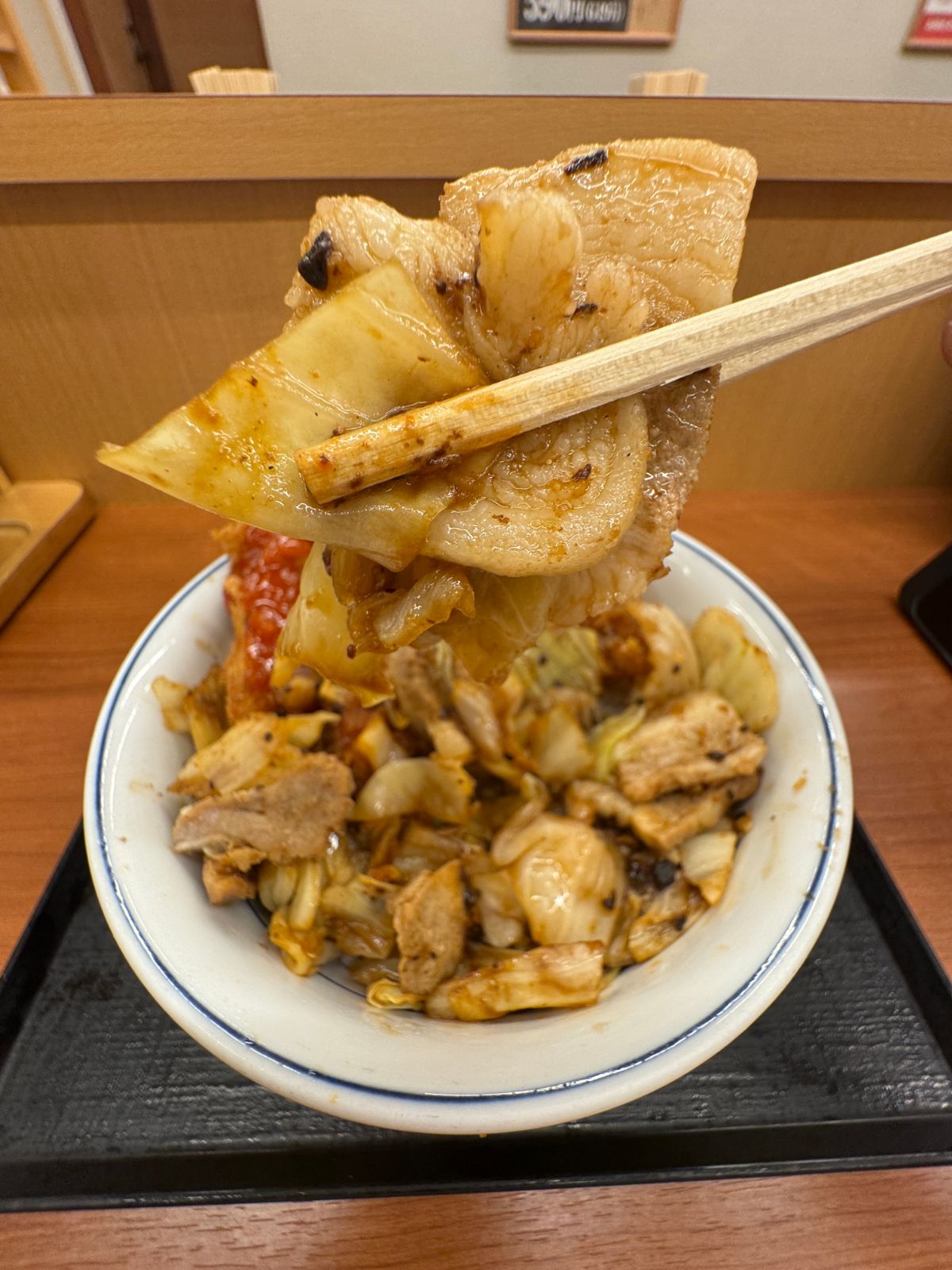 回鍋肉は具材が細かくカットされているので、めっちゃ食べやすい。海老チリと油淋鶏がダイナミックな大きさなので、キャベツと肉が食べやすい大きさにカットされているのは助かる。マジ卍てぇてぇ味。