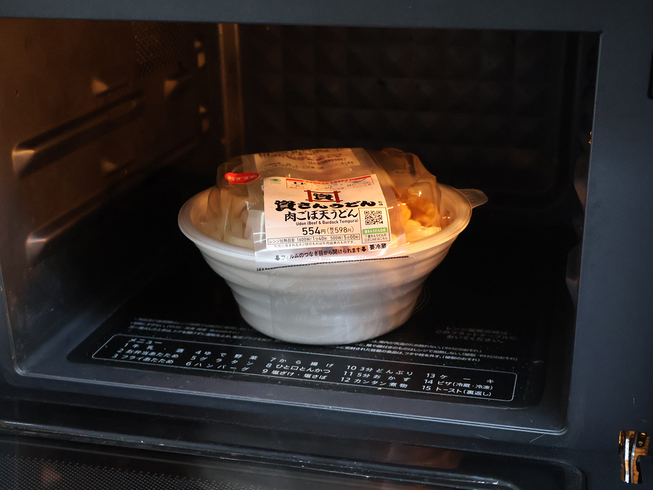 もちろんこれはコンビニ弁当ですから、あのすりこぎのような特大ごぼ天は容器に収まるサイズになっていますし、麺の量も暴力的ではなく一般的。だけど漂ってくるごぼ天の香りや黄金色のだしは本物を彷彿とさせます……!