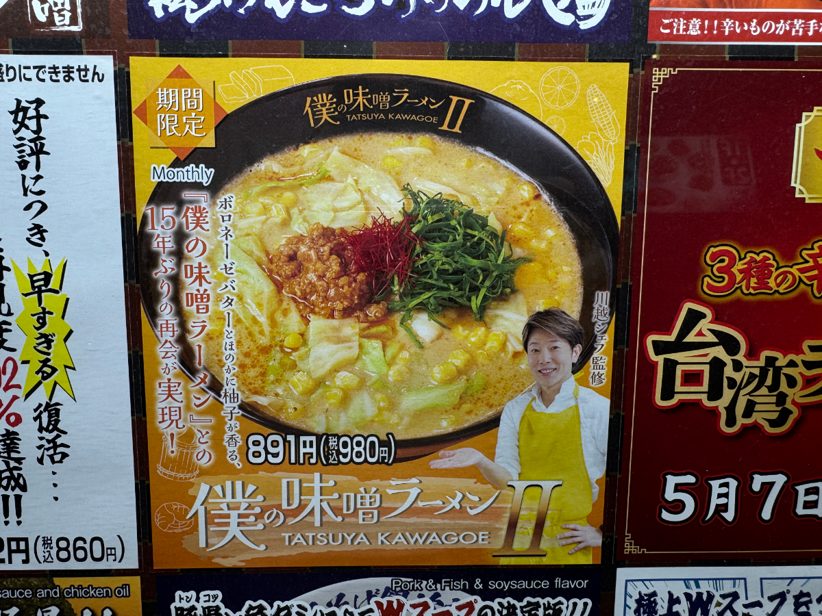 川越シェフ監修ラーメン! らあめん花月嵐で食べられる