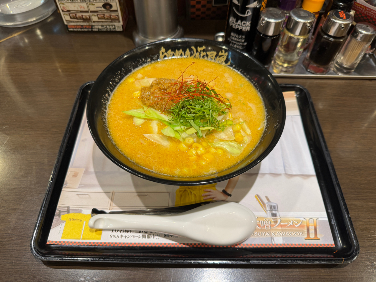 川越シェフの味噌ラーメン食べたよ🍜😋 らあめん花月嵐で食べられるよ♨ やっぱコーンが入ってる味噌ラーメンは正義だなぁあああああああああああああ! ごちそうさまでした! pic.twitter.com/xUxhYprehO