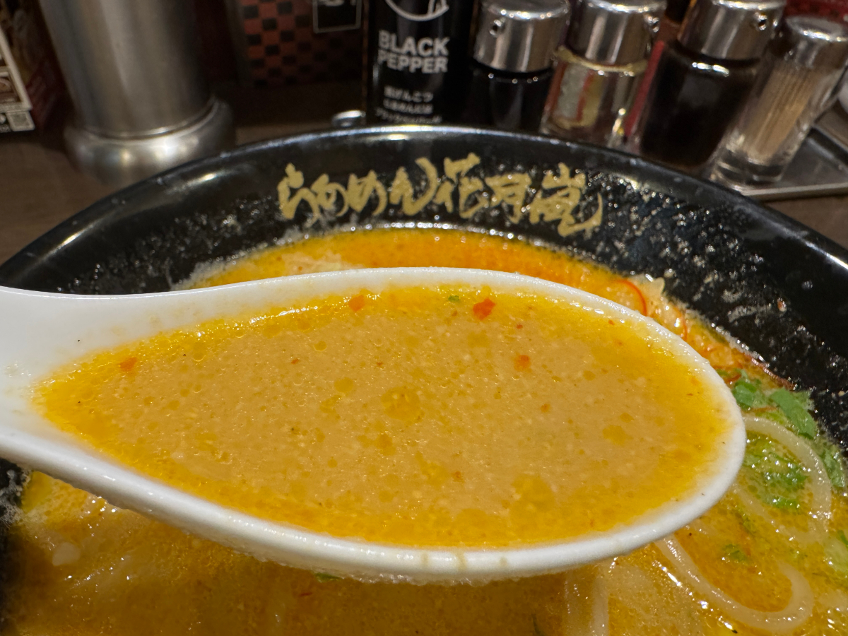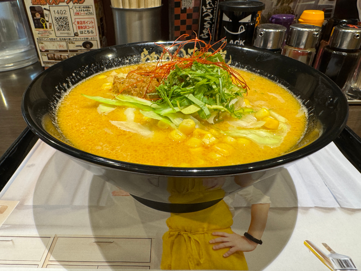 それは気になる! ということで、実際に「らあめん花月嵐」に行って食べてみた。着席して待つこと数分、目の前にやってきた「僕の味噌ラーメンⅡ」はキラキラに輝いていた!
