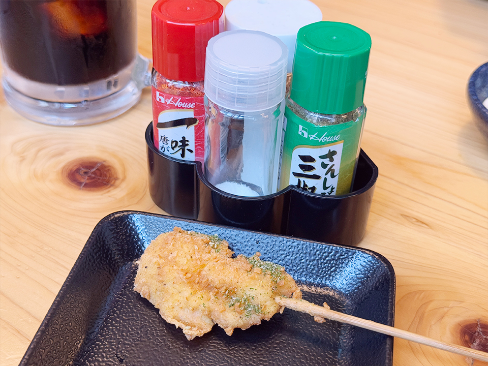 無料で持ってきてもらえる調味料の一味と山椒をかけて食べてもおいしかったです。