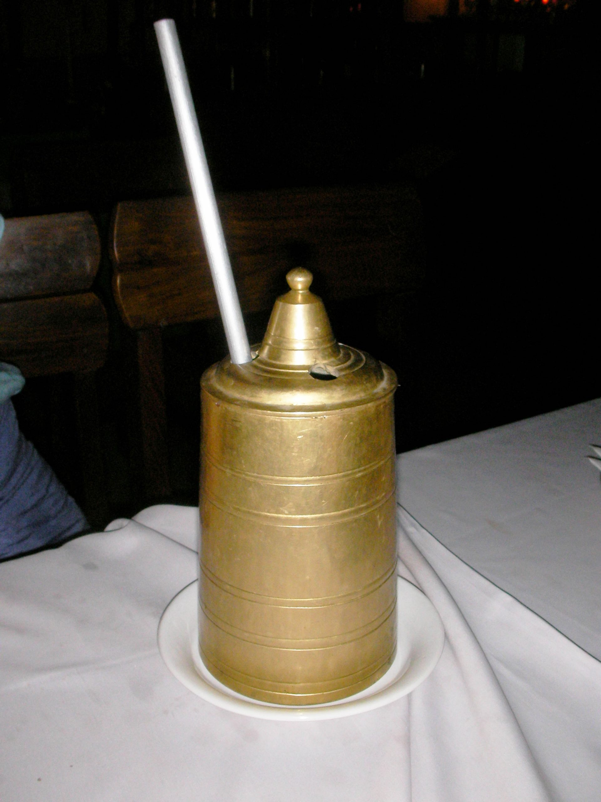 トンバが容器から減ってきたら、そこに熱湯を注いで、トンバを増やすことができる。ビールを増殖できるとは驚きだ。温かいお酒だからなのか、少量でも酔いが早い。