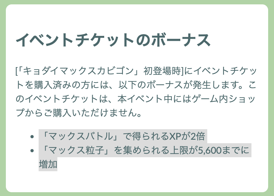 ・「マックスバトル」で得られるXPが2倍