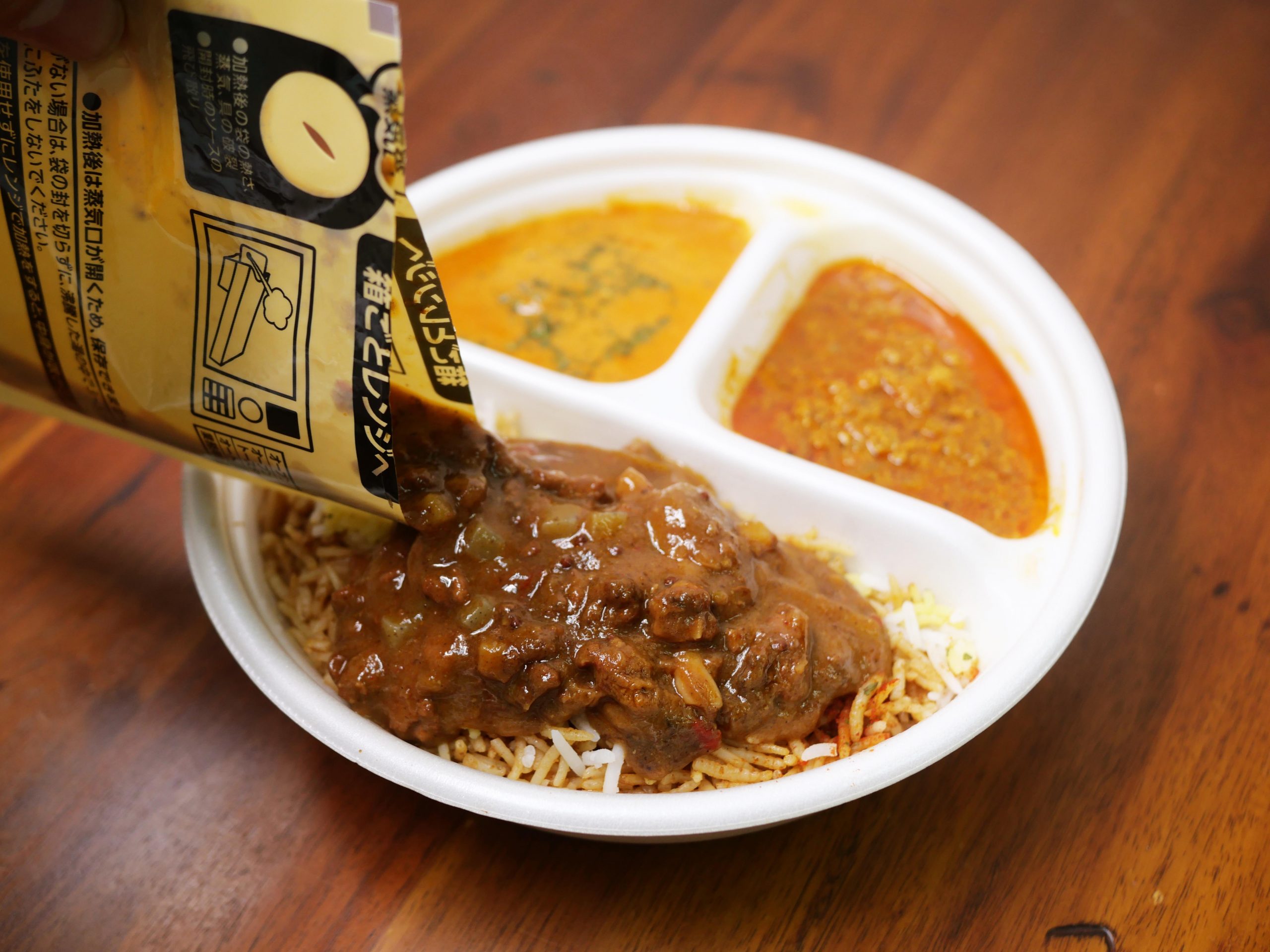 もっとカレー感を強めて食べたい! そんな欲求を解消するべく、ワガママすぎる行動を実行。ビリヤニにレトルトカレーをかけて、トリプルカレーのビリヤニにメガ進化させて食べてみた。