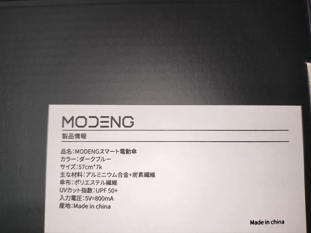 折り畳み傘なのだが、開くときも閉じるときも電動で完結するので、楽なことこの上ない。開封してみると仰々しい箱に入っているのだが、箱入りの傘を見たのは初めてだ。もはやデジタルデバイスと言っても過言ではない様相だ。
