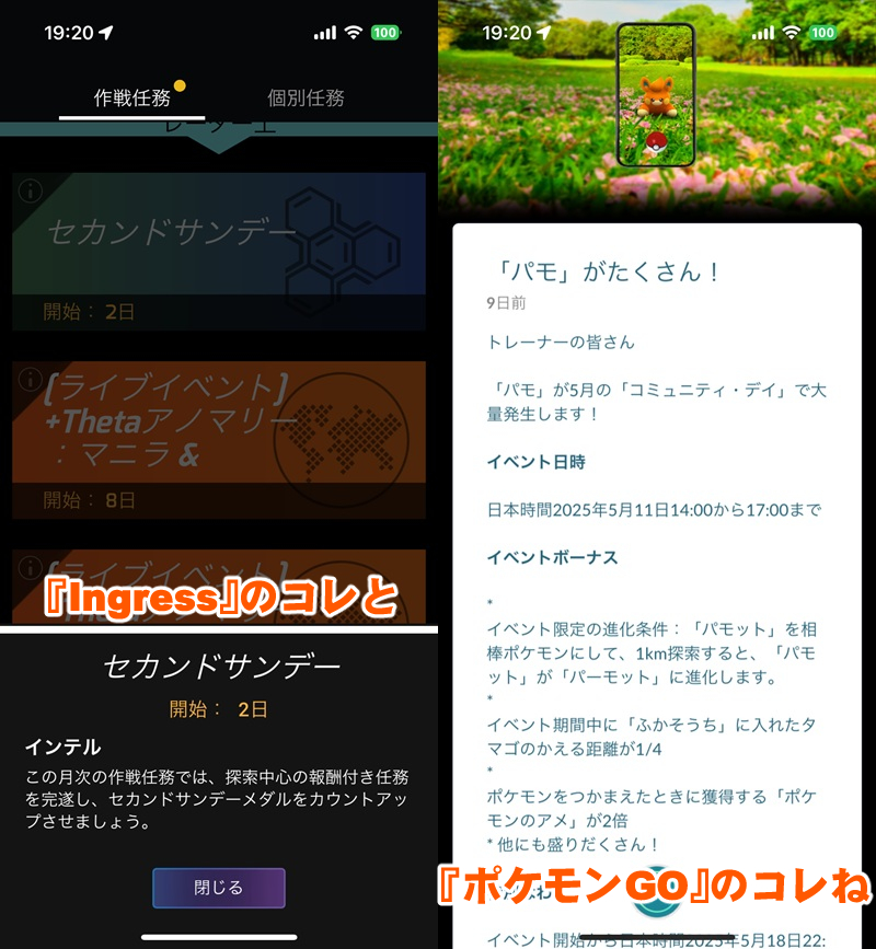 筆者はNianticが開発運営する位置情報ゲーム『Ingress』毎月1度のイベント(セカンドサンデー)と『ポケモンGO』のコミュニティディに合わせて5月11日(日)を予定だ。
