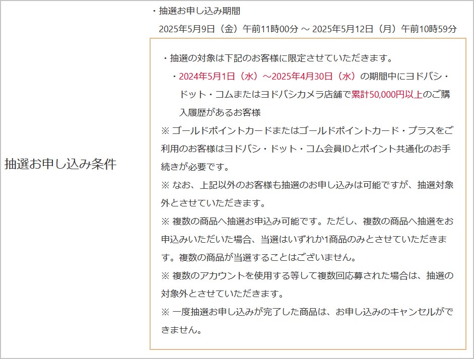 ヨドバシカメラ「複数の商品へ抽選お申込み可能です」