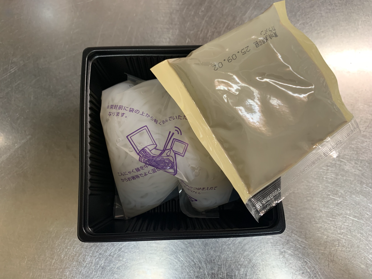 内容物はこんな感じ。麺とスープだけのシンプルなパッケージです。