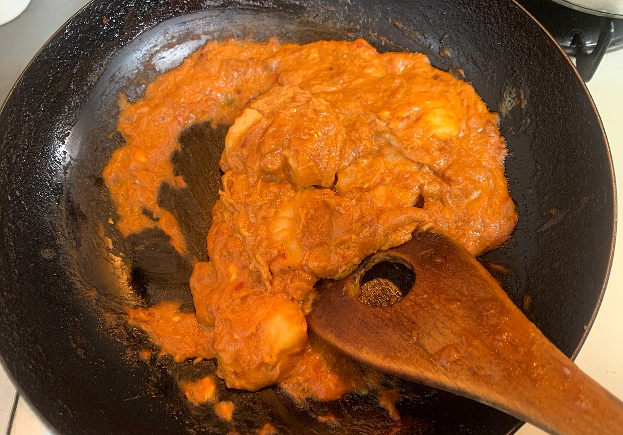 煮詰めて水分を飛ばし、ソースにとろみが出てきたら完成です!