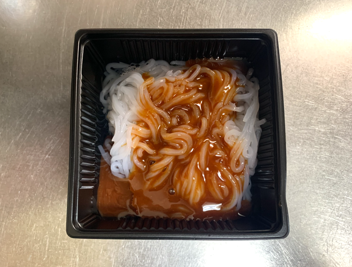 白滝チゲみたいな感じですね。最近は気温も上がり暖かいので、冷たいまま食べるほうが美味しく感じますが、冬だったら温めたこちらのほうが美味しいかも?