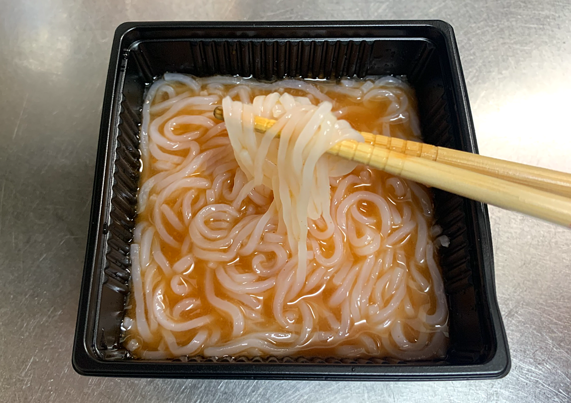 温めるとこんにゃくの匂いが少し目立つものの、とにかくスープと卵の相性がバッチリで美味しい! 温めても麺の歯ごたえは失われません!