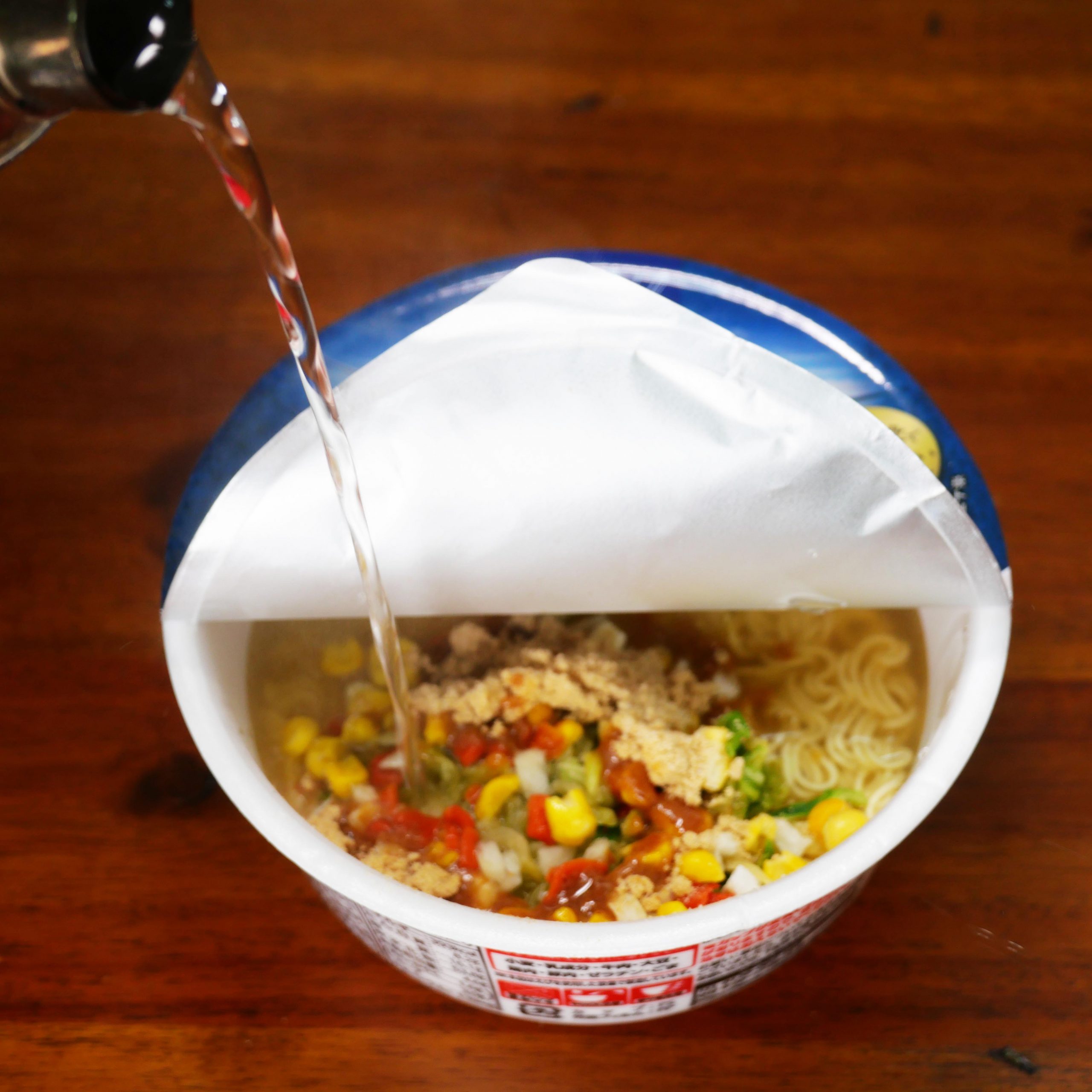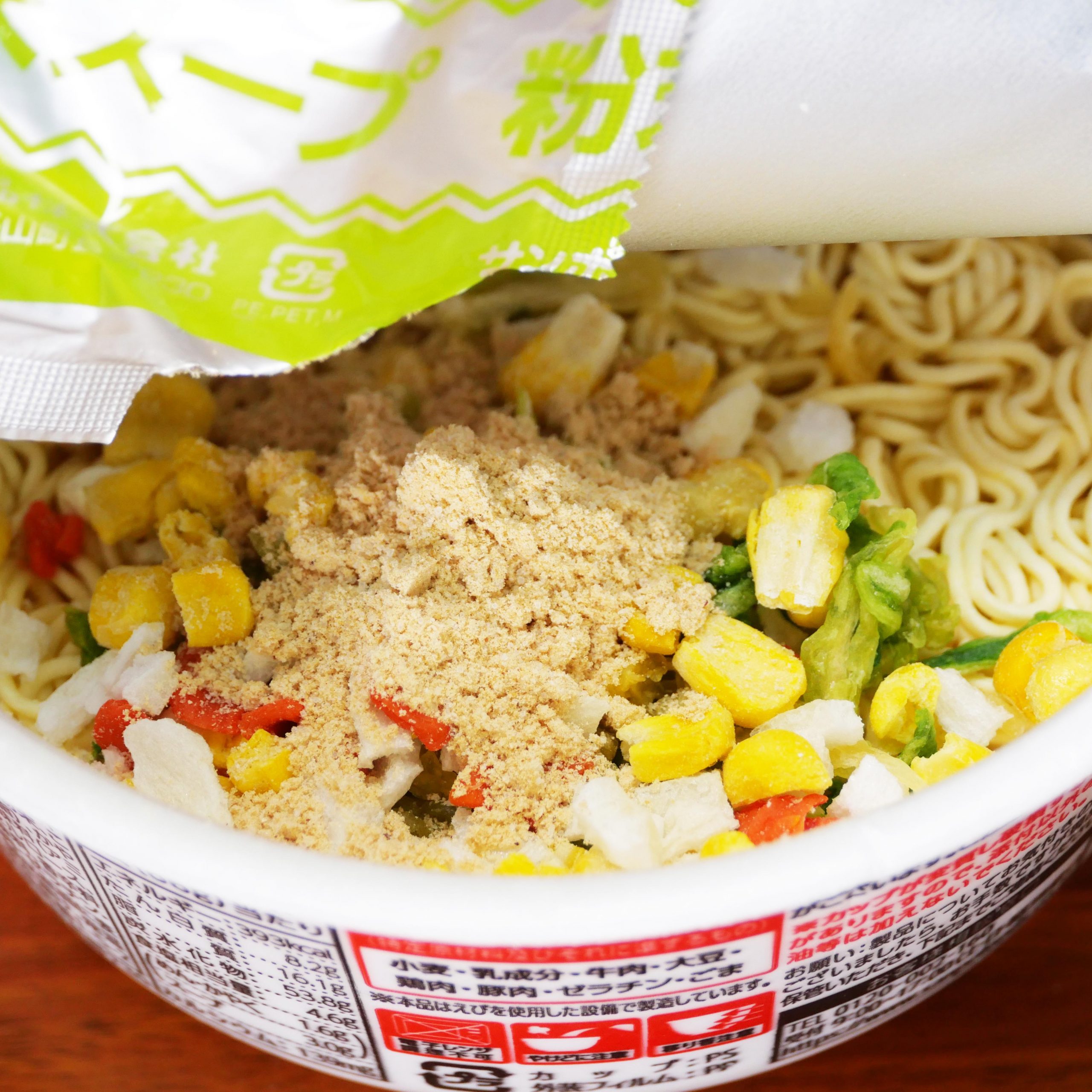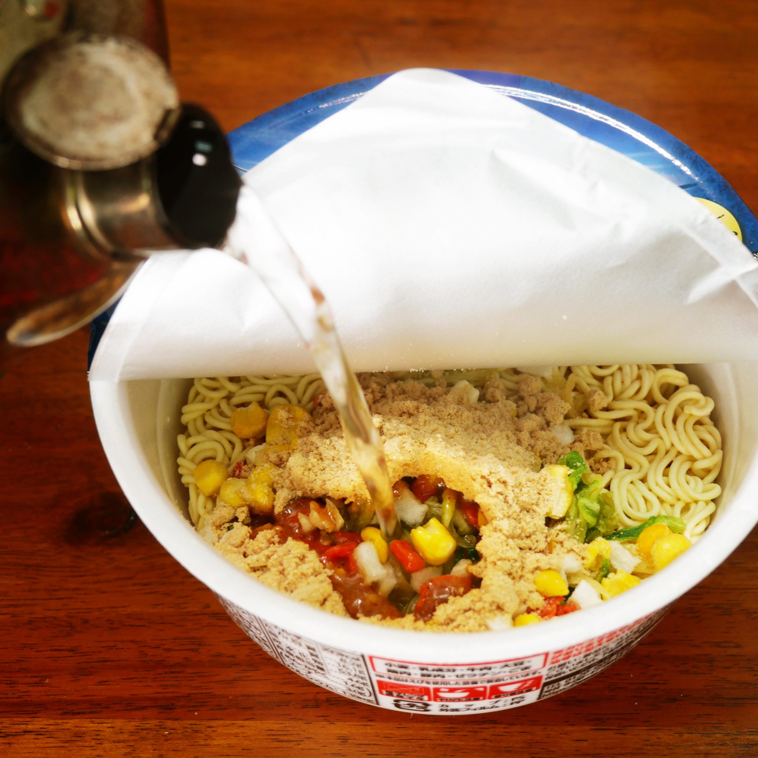 製造はサンポー食品株式会社で、カップラーメンの「焼豚ラーメン」シリーズでおなじみのブランド。人によっては懐かしさを感じるし、人によっては「ザ・カップラーメン」なテイストがジワッとたまらなく心の琴線に触れるカップラーメンです。なので、このANA公式カップラーメンにも期待が高まります。