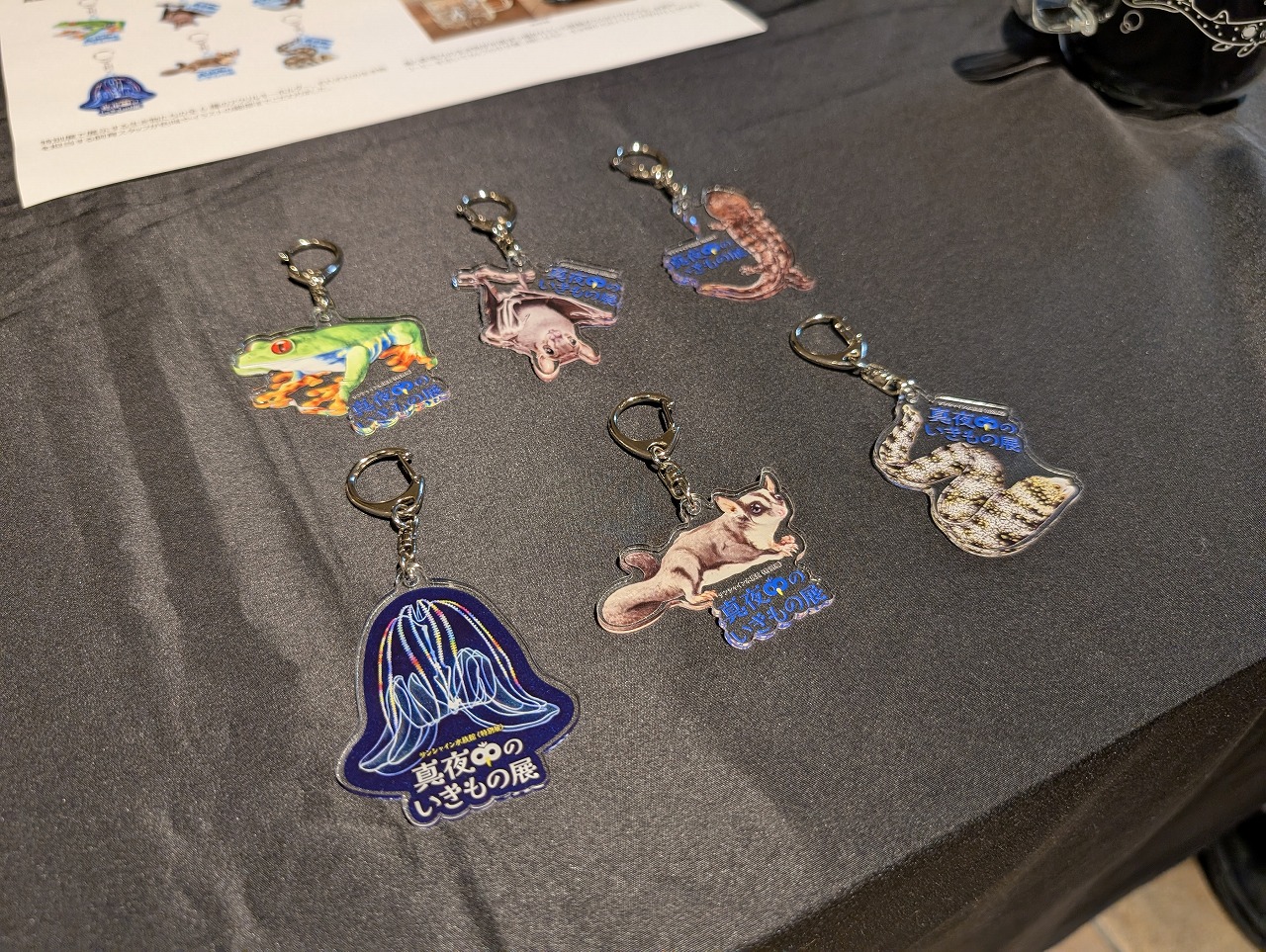 そのほか本展オリジナルグッズとしてTシャツやマグカップなどの販売に加え、「真夜中のいきもの展」オリジナル蓄光ステッカー付き入場券も。