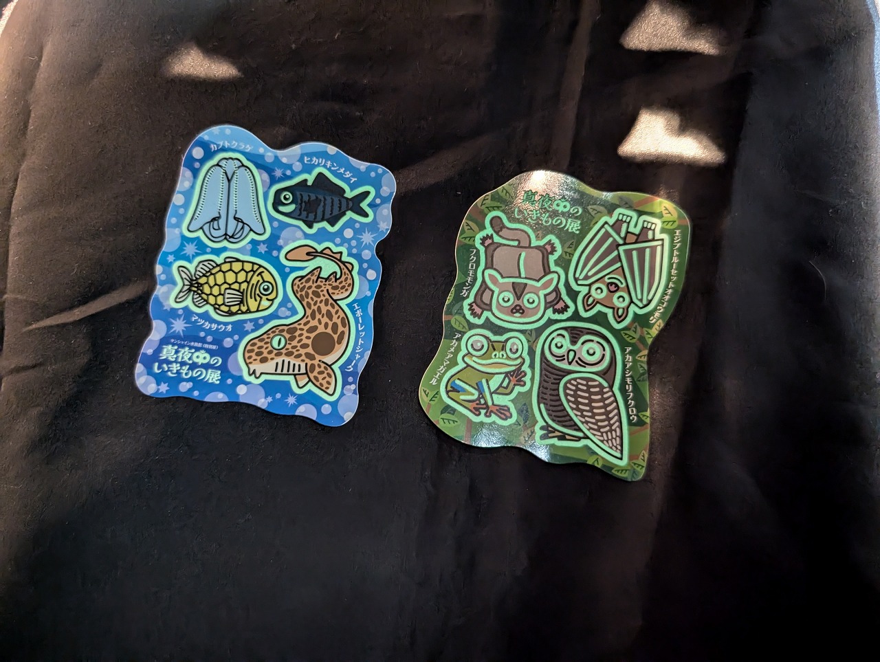 ステッカーは、森と海の生き物がプリントされた2種類があり、暗闇で見ると真夜中に活動する生き物の姿が浮かび上がりますよ。どちらがもらえるかは当日のお楽しみとのこと。