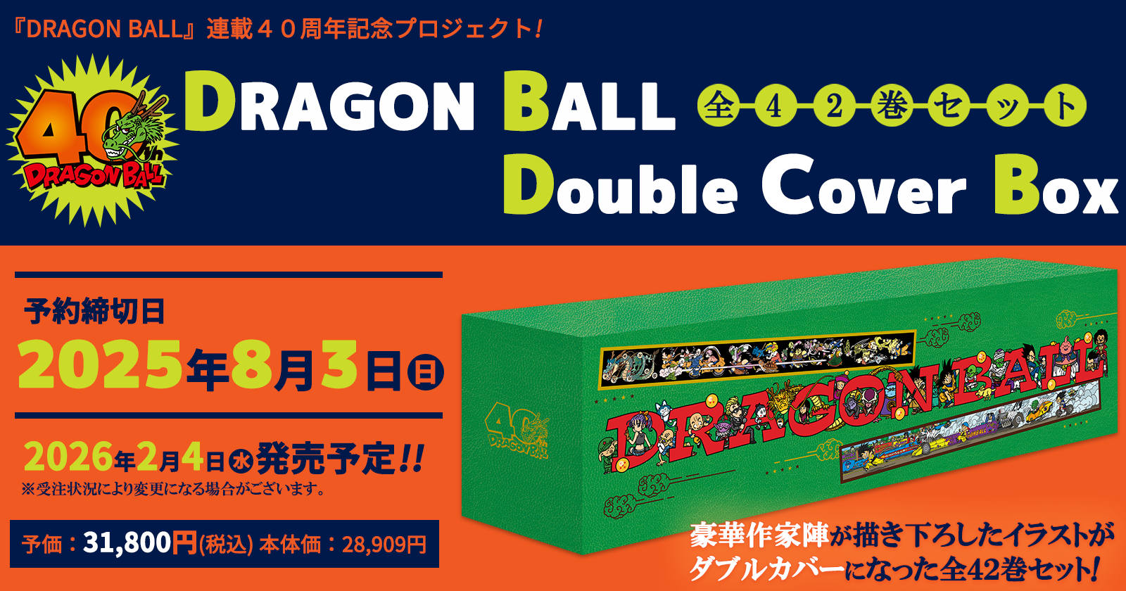 この「DRAGON BALL 全42巻セット Double Cover Box」はAmazonでも購入可能で、2025年8月3日まで予約を受け付けており、2026年2月4日に発売する予定だという。予価は税込31800円。めちゃくちゃ価値のある記念すべきセットなのは間違いない。