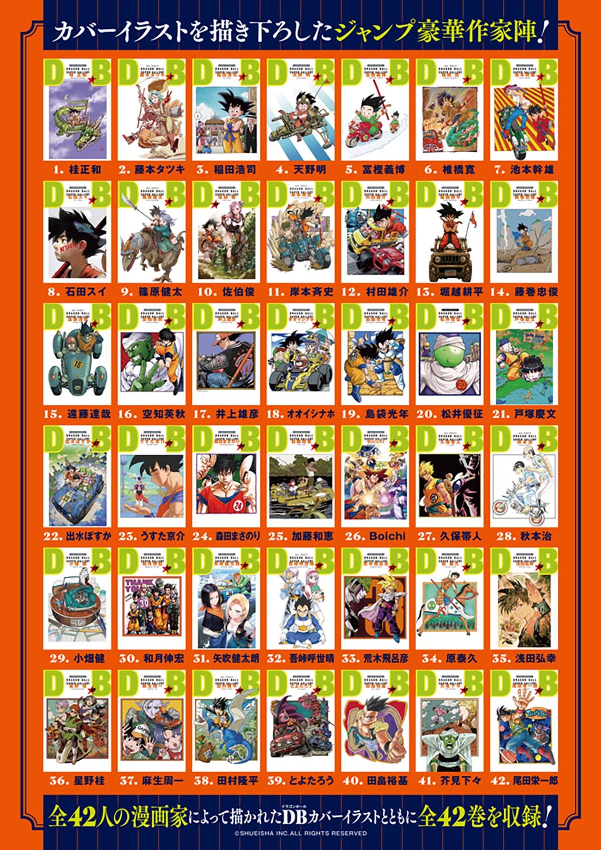 集英社はドラゴンボール40雌雄年記念として「DRAGON BALL 全42巻セット Double Cover Box」の予約を開始。そこに含まれる単行本はダブルカバーになっており、鳥山明先生の表紙だけでなく、人気漫画家たちが描いたドラゴンボールの表紙もデザインされているのだ。