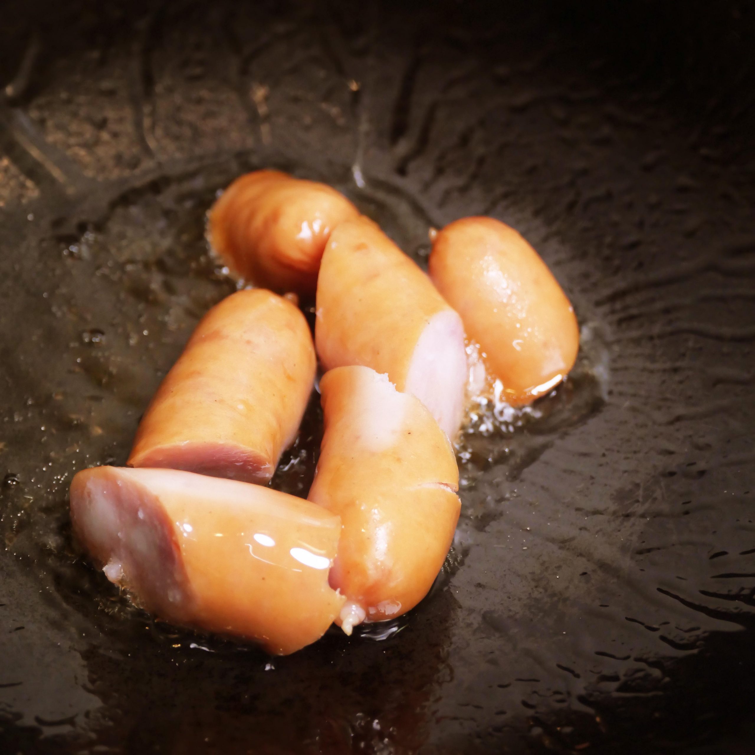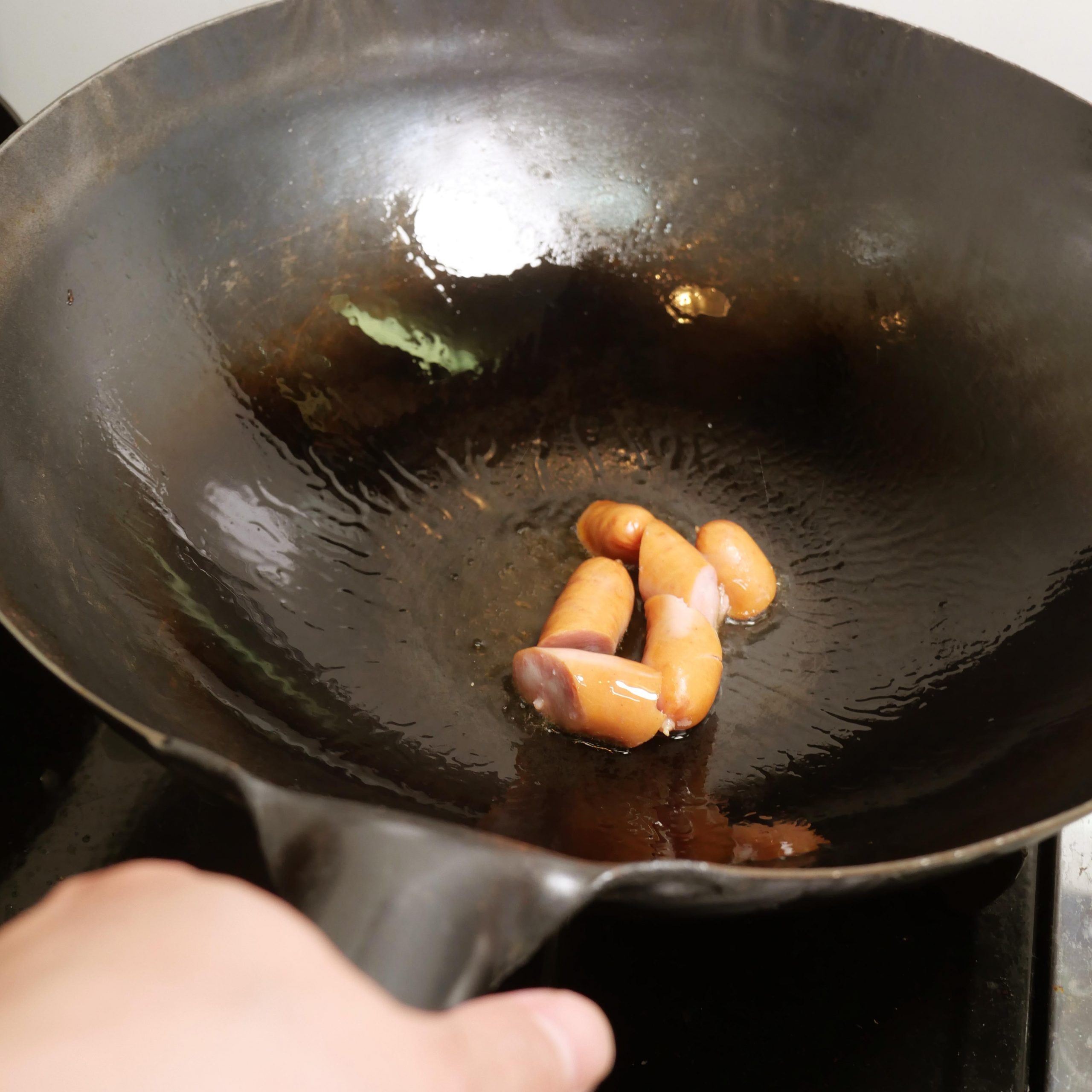 1. ウインナーは斜め3等分にし、にらは5cm幅に切る。