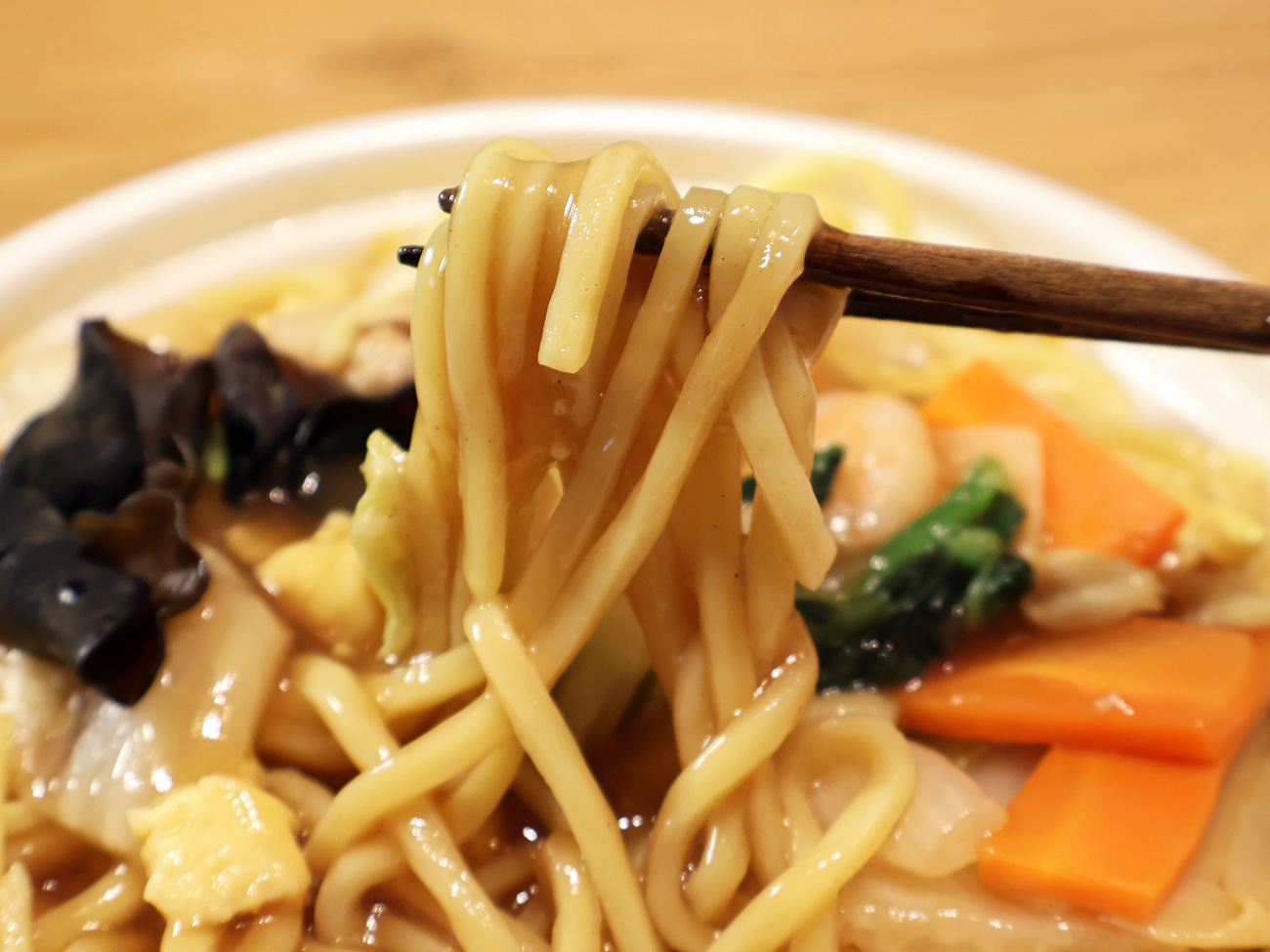 それでいて醤油とオイスターソースベースのあんは全体にたっぷりとかけられていますし、麺はかなりの太さで存在感があるし、ジャンクな素質も秘めているってところがまた魅力的じゃないですか。
