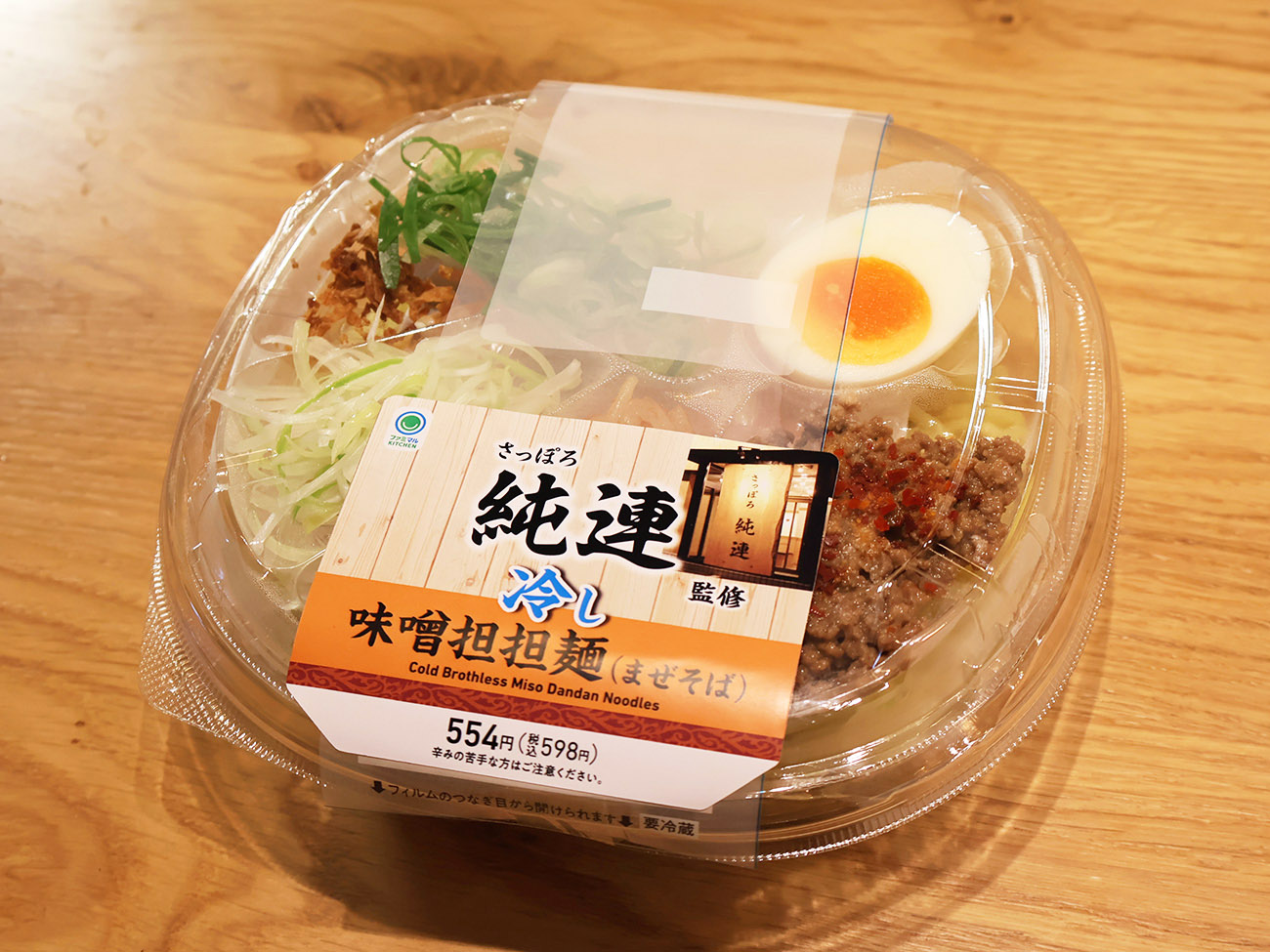 最近ファミリーマートでなにかと監修商品が発売される味噌ラーメンの名店「さっぽろ純連」は冷し味噌担担麺(まぜそば)を監修。「さっぽろ純連」は東京にある頃に何度も通いましたが、担々麺のイメージはまったくなかったので意外な感じがします。