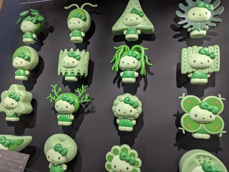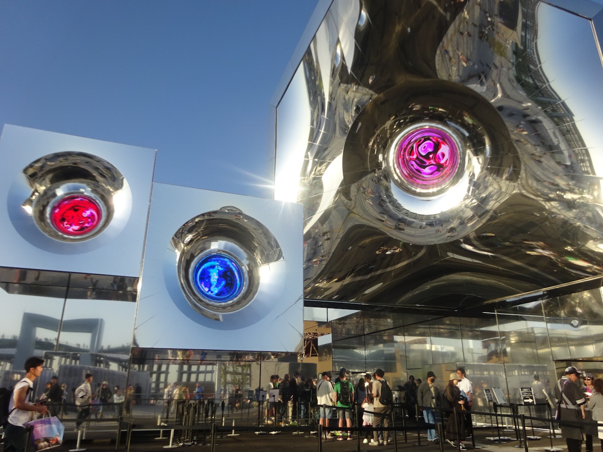 日本館は、話題の「火星の石」はスタッフに流されてじっくり見ることができず、見た目も地味な印象でした。「循環」がテーマで「藻」の可能性についてフィーチャー。32種類の「藻類」に扮したハローキティが見応えありました。
