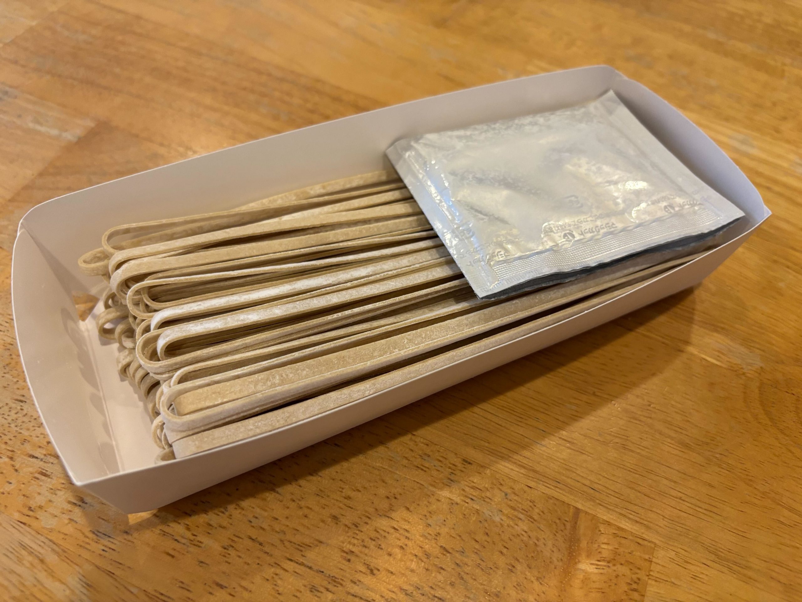 パッケージを開けると折りたたまれた乾麺とスープが1袋。麺は8分茹で、スープは1人前70mlの水とともに火にかけ、ネギを入れて少し煮立たせる。ネギは長ネギに十字に切れ込みを入れて、正方形をイメージして切ると良いだろう。トッピングはチャーシューやほうれん草などお好みで用意しよう。