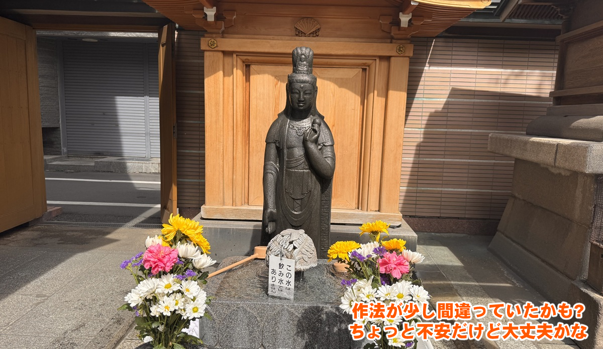 “とげぬき地蔵尊”として知られる曹洞宗萬頂山高岩寺に立ち寄り、母と祖母と訪れた約8年前の光景を思い出しながら見よう見まねで頭や腰など体の痛む部位をまんべんなくを拭いて参拝。