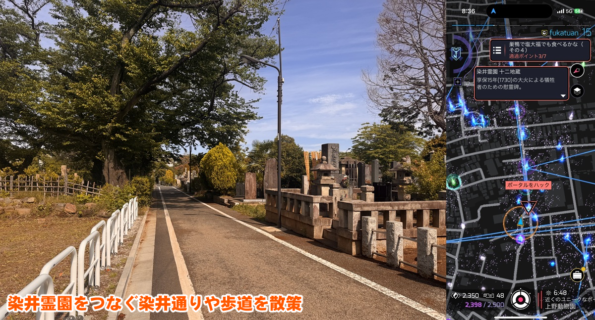 “羅生門”や“地獄変”など多くの作品を残した小説家・芥川龍之介の墓を当ミッションではポータル(スポット)を介して訪問できる。
