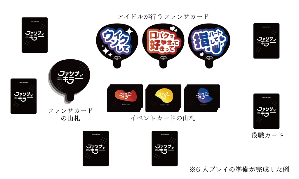 『ファンサキラー』では、プレイヤーは「アイドル」役と「一般人」役に分かれ、「アイドル」が他のプレイヤーにバレないようにファンサを行って「ファン」を増やす。「一般人」は誰が「アイドル」かを観察しながら見破ることが目的だ。ゲームの進行はイベントカードを使って行い、「アイドル」が見破られたり、一定数以上の「ファン」を獲得したりすると勝敗が決まる。