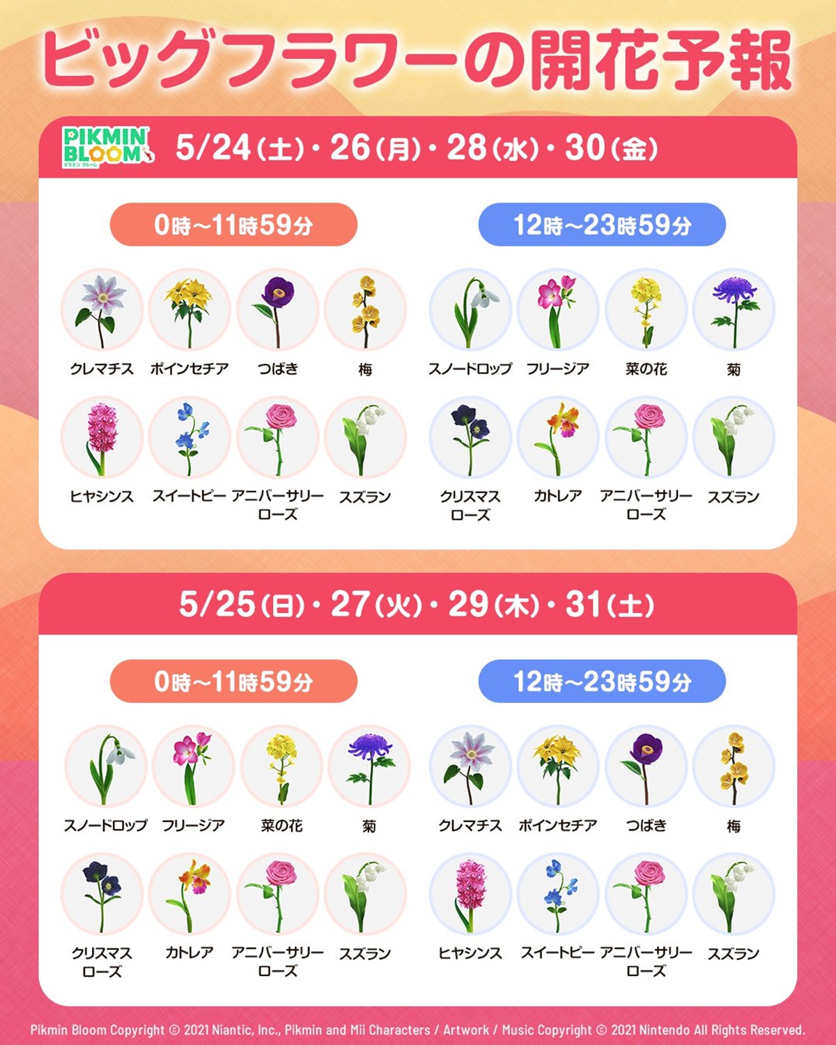 また、開催期間中は下記のスケジュールで対象の花が開花。