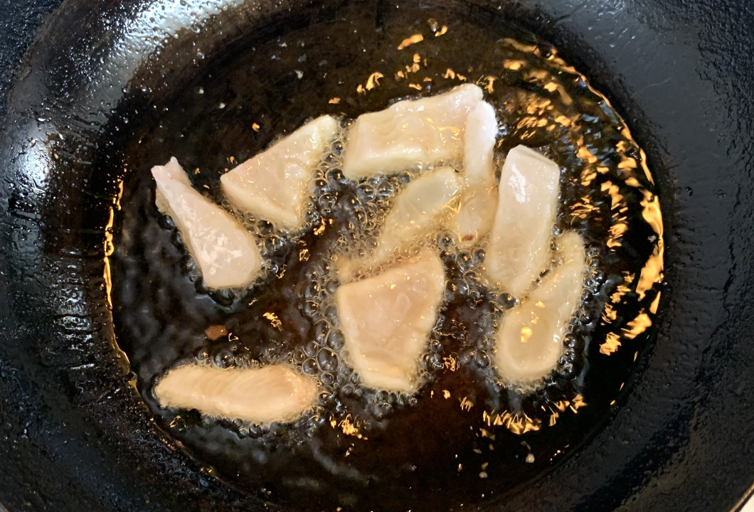 磯臭い魚を揚げると臭みが油に移ってしまい、油の再利用は不可になります。なので少量の油で揚げます。